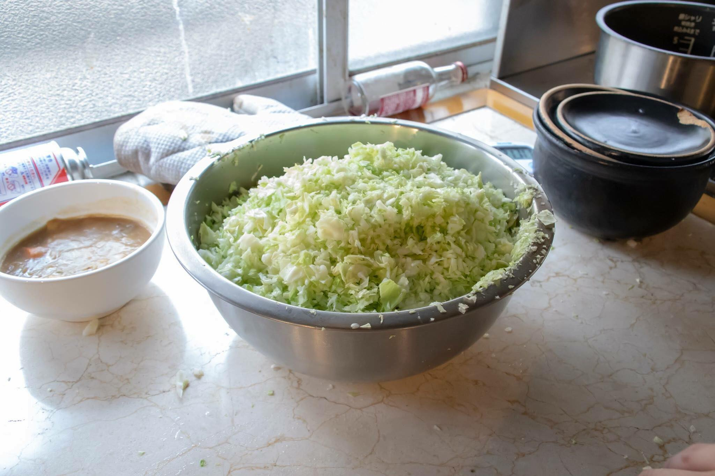 まずは、餃子のタネ作りから!