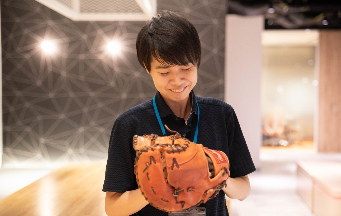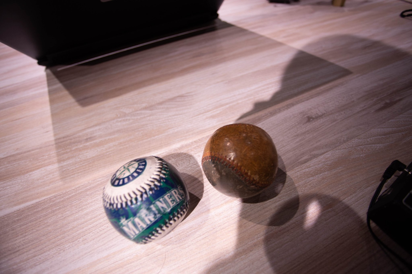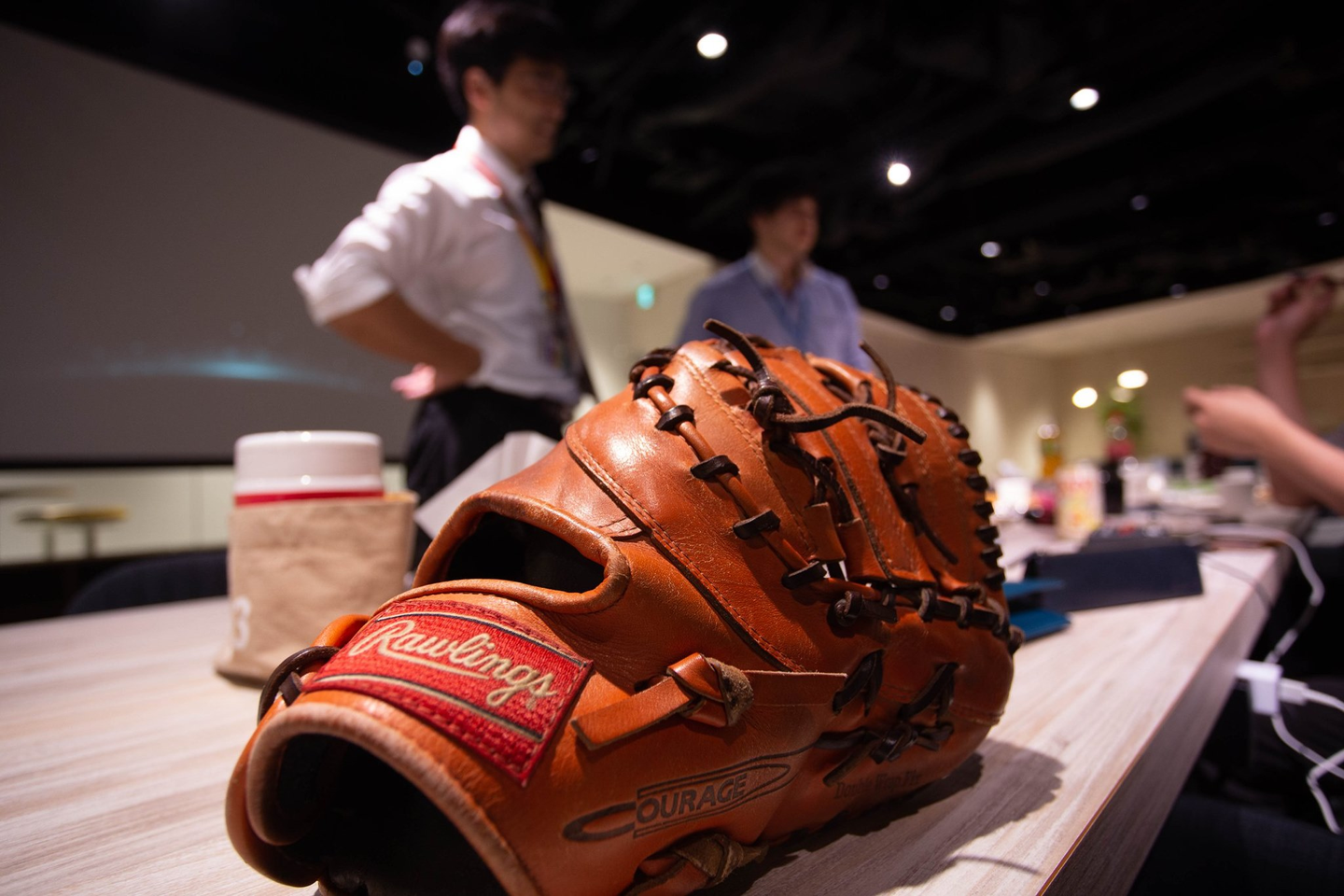 野球のグローブやトレーニング用のボールを持ってきてくれた彼を、小物と一緒にパシャリ。