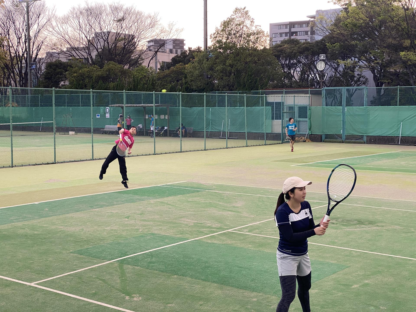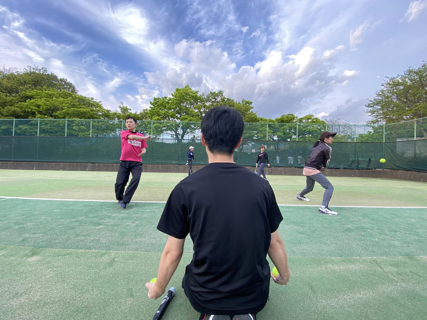 初心者の方にはハンデをつけたりペアのバランスを配慮したりと皆がストレスなくテニスできることを心がけております!