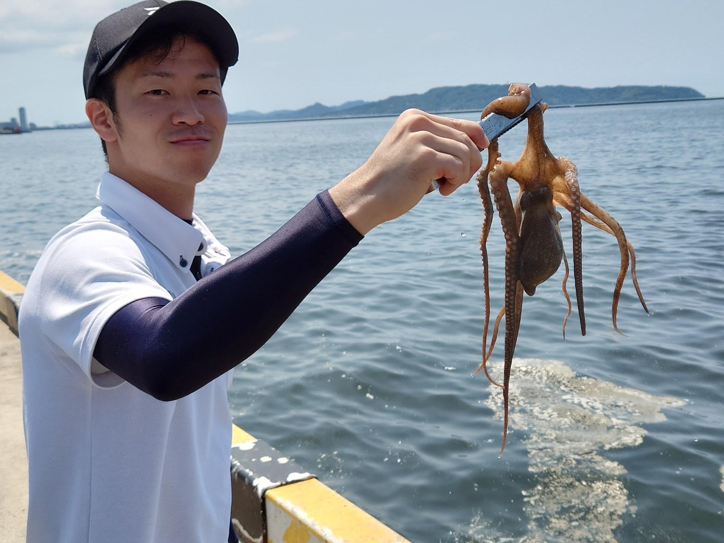 なんと開始1投目、ルアーで釣れたのは、釣り部では初のタコでした!