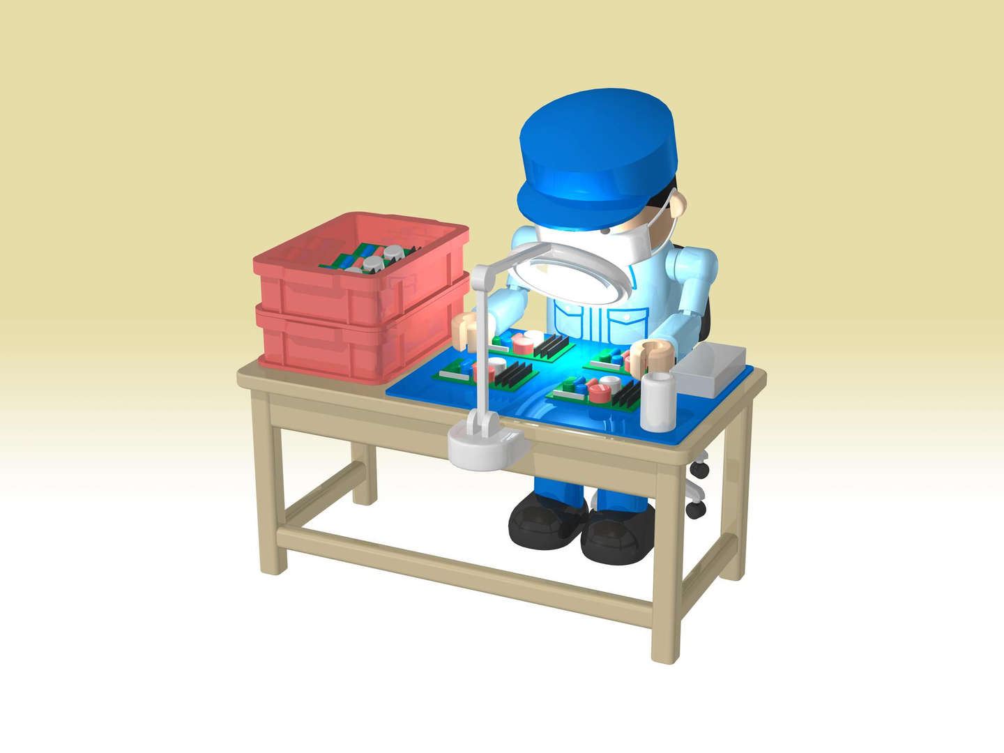 簡単にどんな仕事かというと、顕微鏡を使って製品にキズが無いか確認するお仕事です。