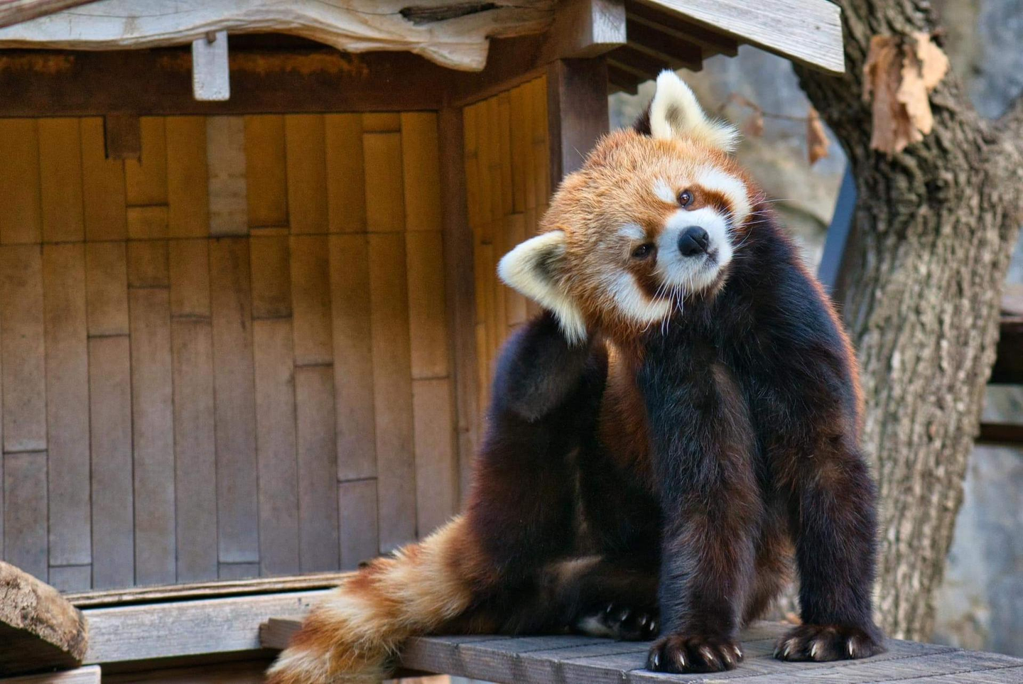 入り口を入ってすぐに、この園のアイドルレッサーパンダの『いちごちゃん』がお出迎え。