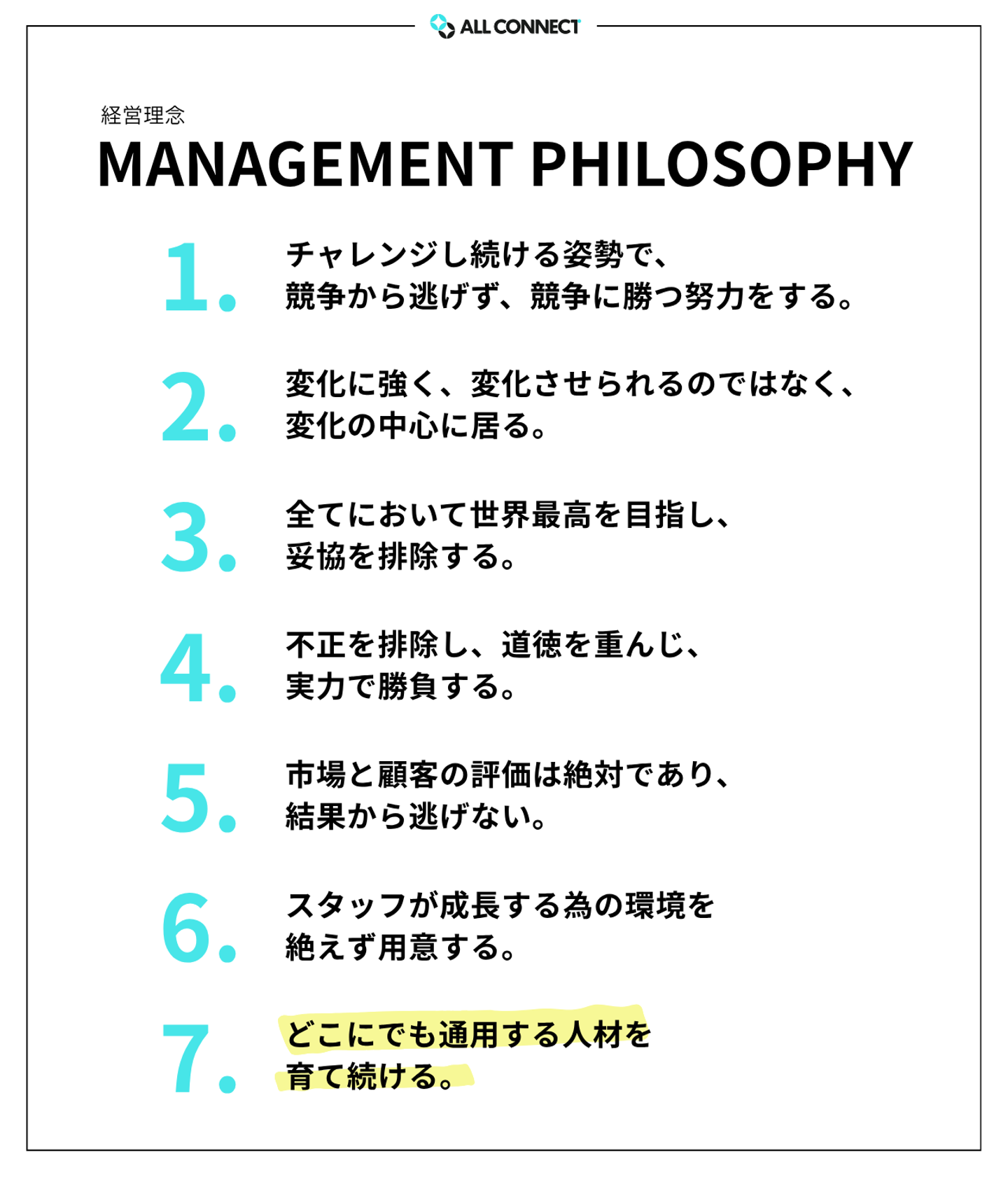 オールコネクトの人材育成方針の中心にあるのは、“ジェネラリストの育成”です。