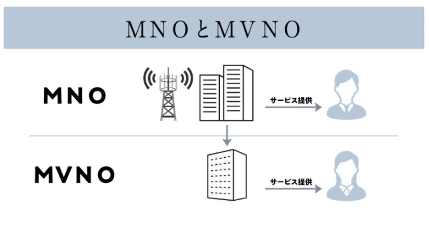 「MVNO(エムブイエヌオー)」とは、「Mobile Virtual Network Operator」の略。日本語訳は「仮想移動体通信事業者」です。大手通信事業者(大手キャリア)から通信回線を借りて、通信サービス料金の安い「格安SIM」「格安スマホ」を提供している通信事業者のこと。 ここでの大手キャリアというのは、日本でいうと「ドコモ」「au」「ソフトバンク」「楽天」などのことを指します。