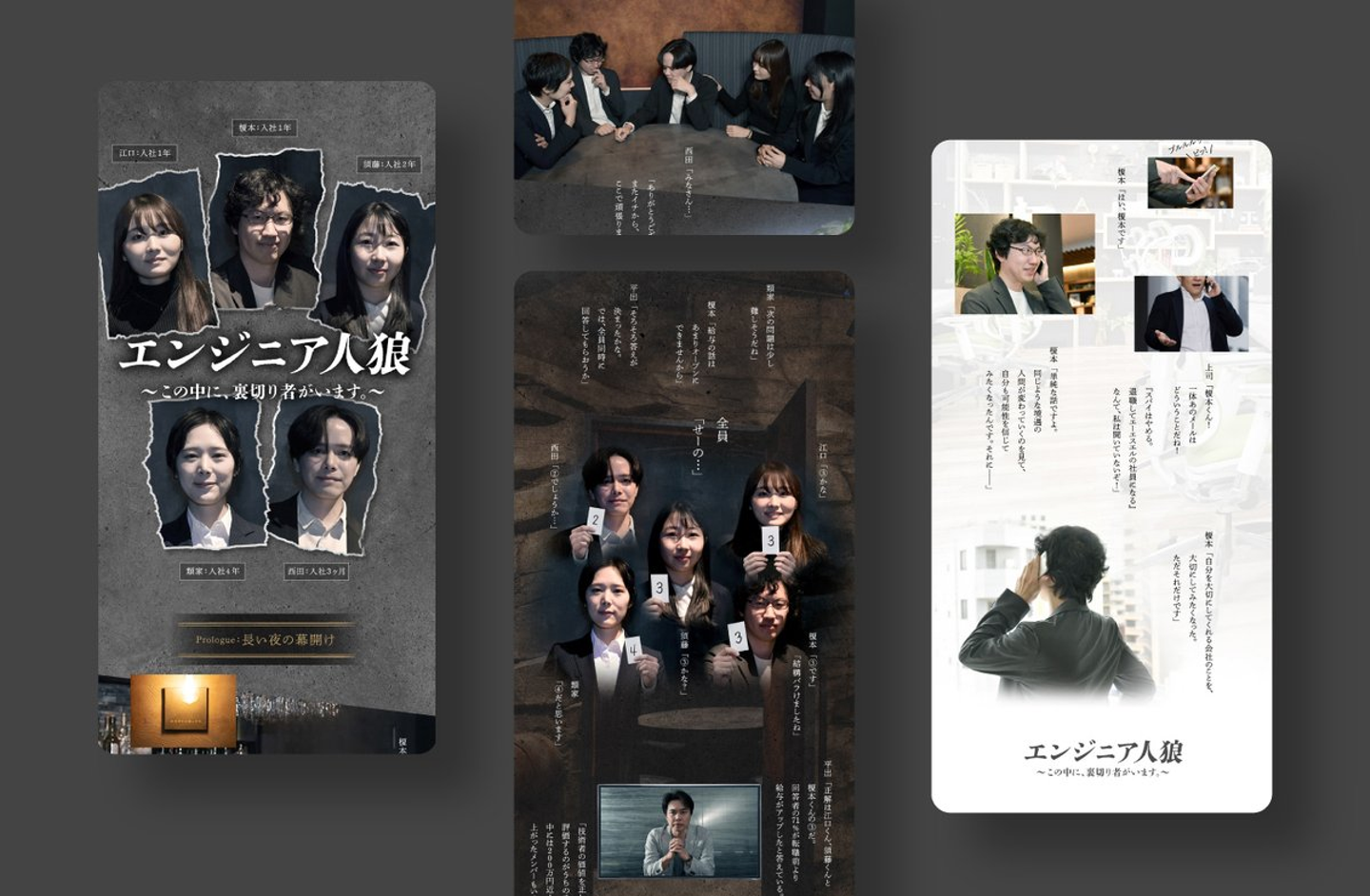 クリエイティブアワード優秀賞を受賞したのは、ライター西村、デザイナー山田が担当したエンジニア×人狼ゲームをモチーフにした求人広告です。クールで重厚感のあるキービジュアル、ラストにどんでん返しが用意されたストーリー…。類を見ない求人広告でクライアント企業の平均2倍の応募数を実現しました。