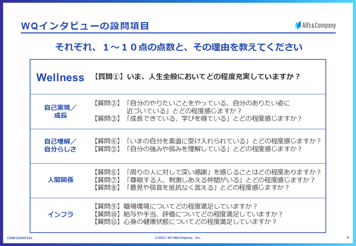 - WQの設問は「人生全般の充実度」をはじめ踏み込んだ内容が多いですが、運用上工夫していることはありますか?