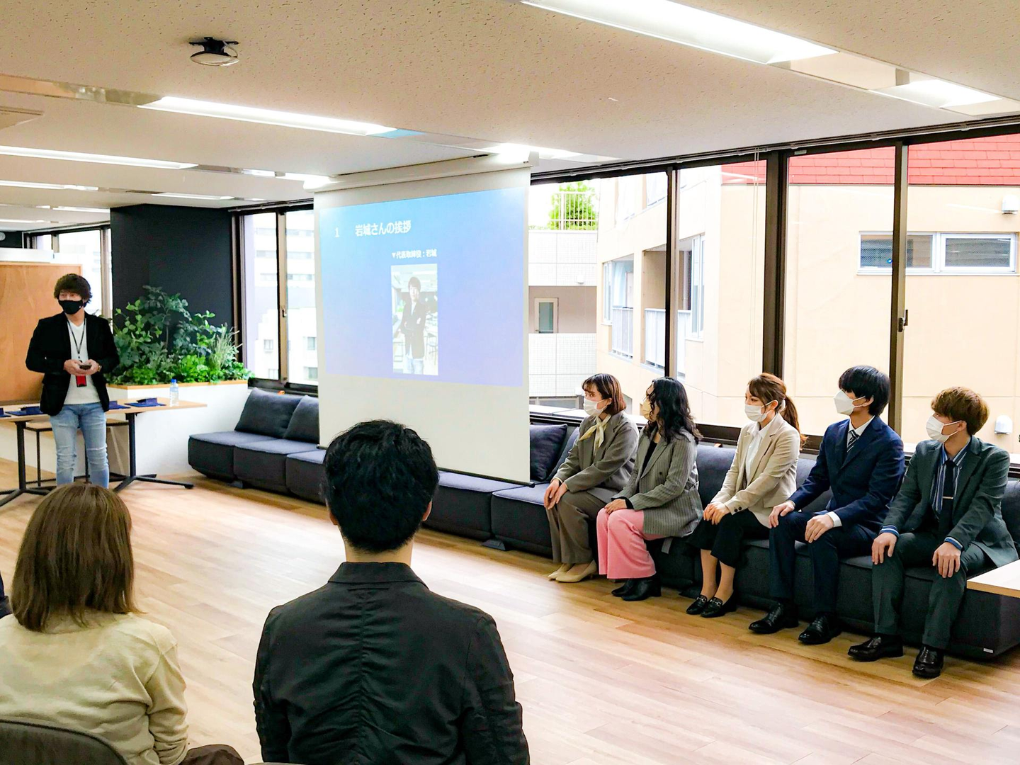 代表の岩城から「不安定な情勢の中で不安なこともたくさんあると思うが、積極的にチャレンジをし、トライ&エラーを繰り返しながら成長していってほしい!」と、新卒社員へ向けて歓迎と期待が込められたメッセージを送られ、新卒社員の皆さんは真剣に耳を傾けていました。