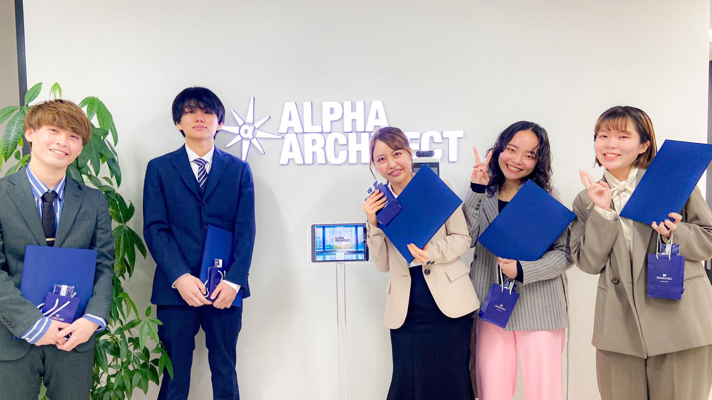 また、新卒社員においては、就職活動のタイミングでも不安や葛藤を抱えながら、数多くある会社の中からアルファアーキテクトを選んでいただけたこと、アルファアーキテクト社員一同とても嬉しく思っております。