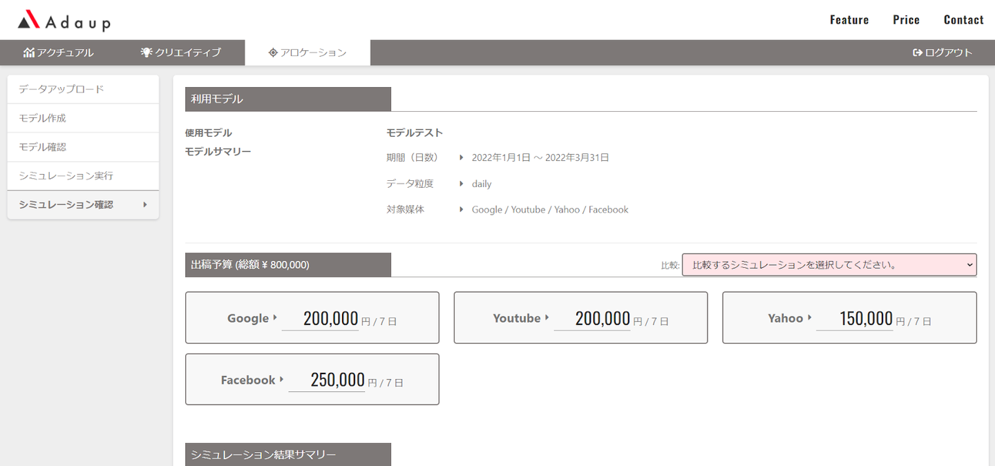 また、メディアアロケーションで期待される成果をAIでシミュレーションし、広告効果の最大化を支援します。
