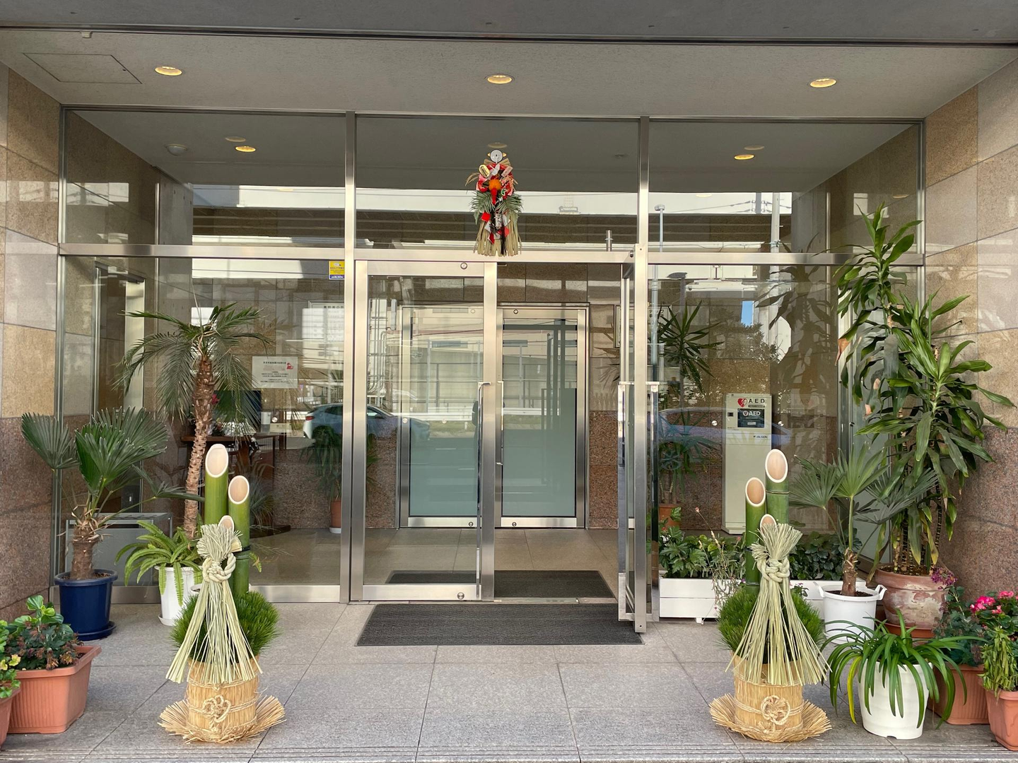 先程、いつもお世話になっているお花屋さんに来ていただき門松と玄関飾りを設置していただきました!