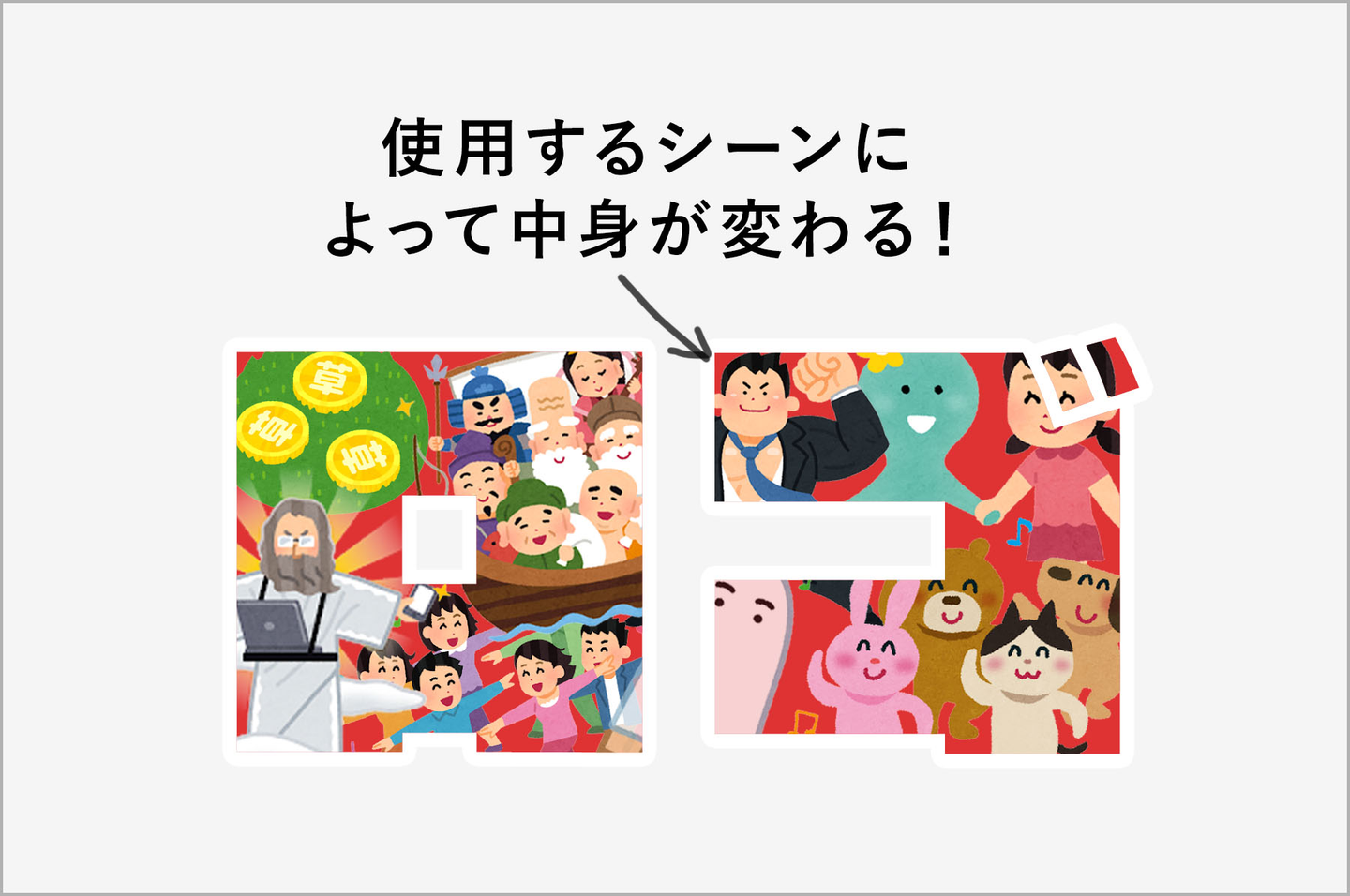 ロゴの中にいろんなものが入っても成立するロゴ。
