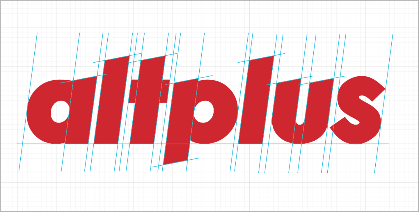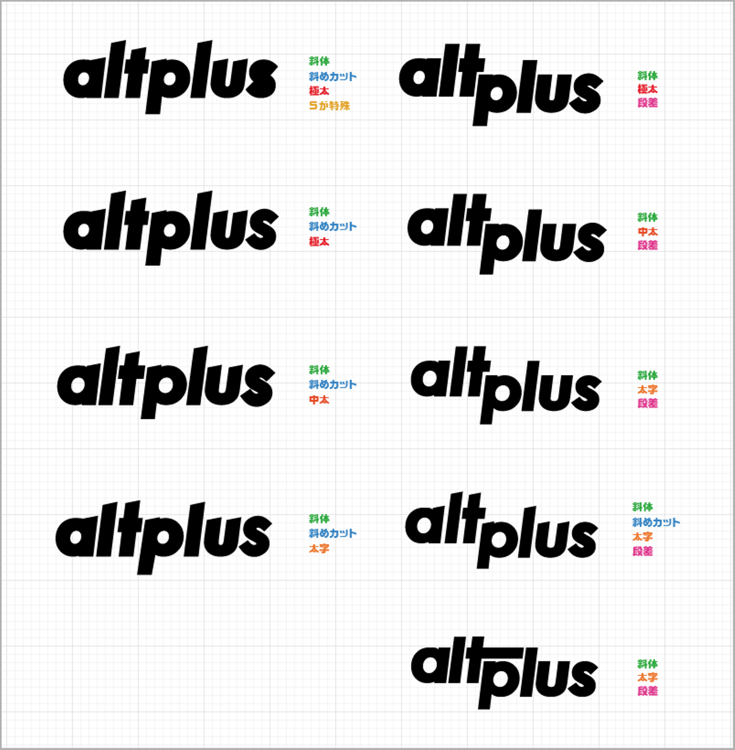 「p」の下の部分が同じく斜めにカットしているのも、"安定を求めない"オルトプラスらしさの象徴です。