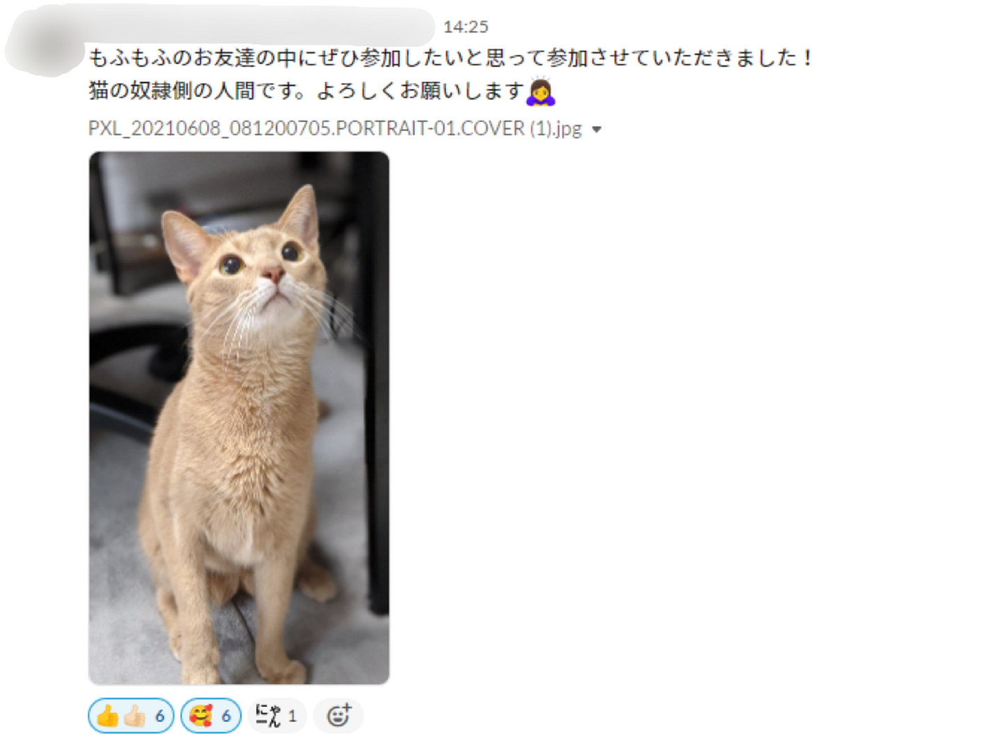 Slackの雑談チャンネル(チャンネル名:「もふもふのお友達」)も存在します。