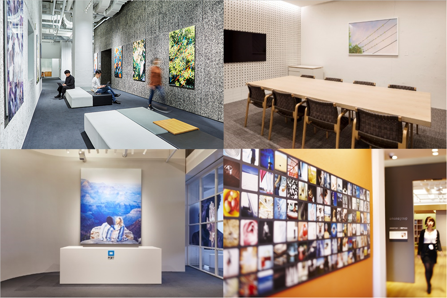 作家作品から社内クリエイターの作品など、エントランス、会議室にとどまらず、社員が行きかう通路、エレベーターホール、小さいところでは入館証をかざすところ一つ一つにまでビジュアルが!
