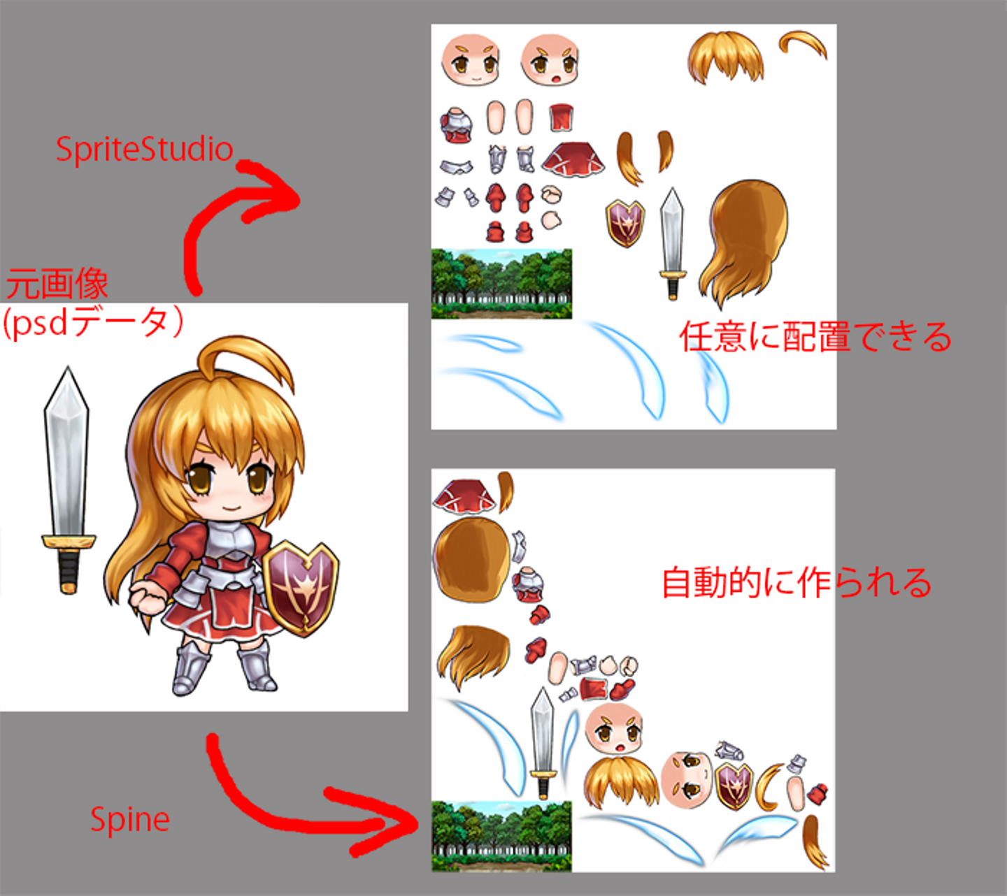 以下は【SpriteStudio】と【Spine】の動画比較。