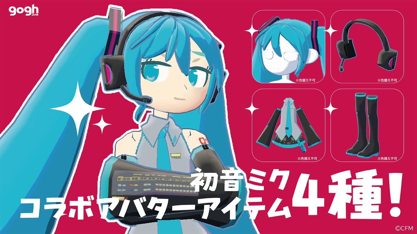 - 初音ミクアバターアイテム(4種、すべて色替え不可)