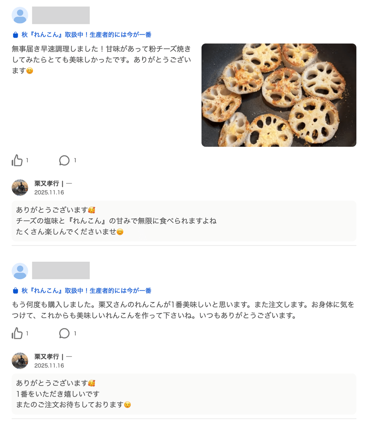しかし、ポケマルでは少し違った景色が見られます。 生産者と直接つながり、日々の発信を見ているユーザーからは、「今年は大変でしたね」「遅れても待ちますよ」といった声が自然と上がります。