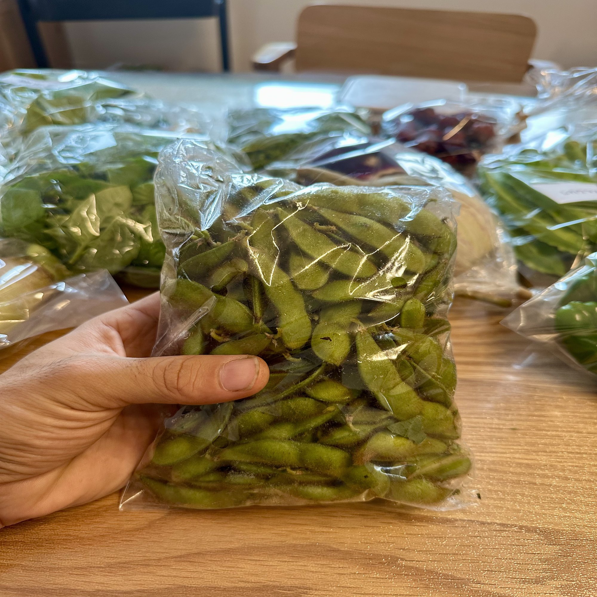 (社内で販売した朝採れ枝豆!大好評でした)