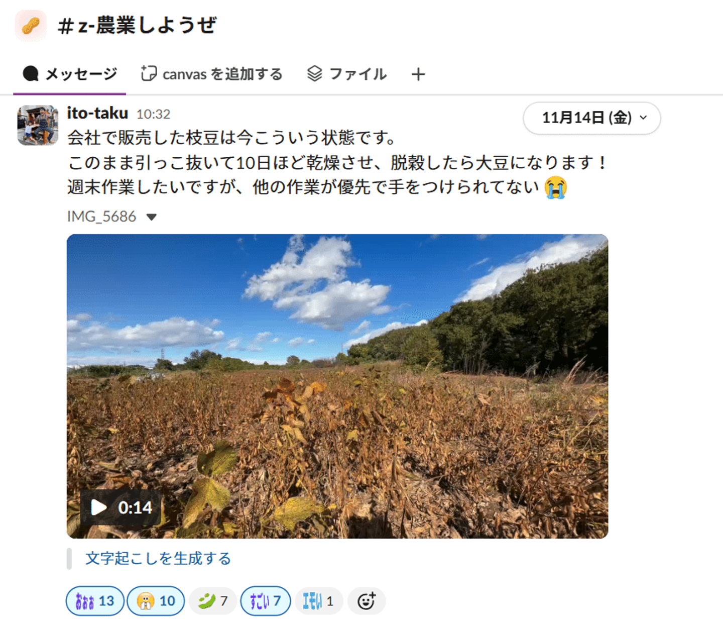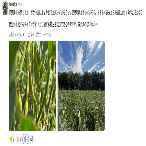 —Slackにも農業関連の雑談チャンネルがあって、30人近くが参加していますよね。伊東さんの投稿、いつも楽しみにしてます。