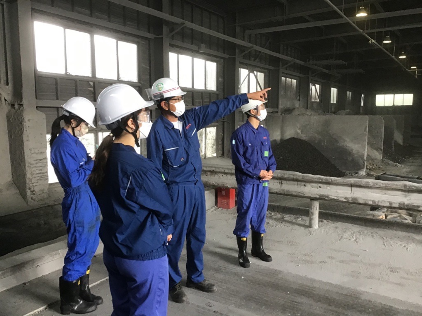 ↑製造所所長に、茨城循環資源製造所内を案内してもらっています。