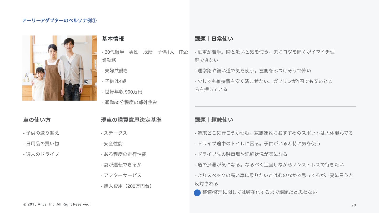 仮説立てが甘くペルソナに刺さらないことが原因でした。ペルソナを理解し価値ある記事を書きたい。実際に親戚や周りのペルソナに近い人物に車関連のインタビューを行い、ペルソナ像をインプット、アップデートを行いました。