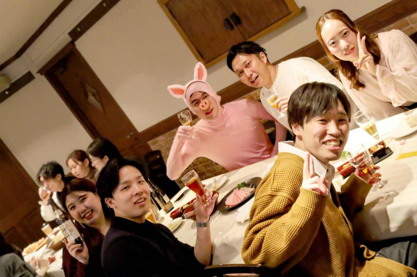 キックオフで共有された戦略と熱気をそのままに、後半は「決起会」を開催しました。 部署や年次の垣根を超え、グラスを片手に語り合う時間は、互いの労をねぎらうだけでなく、これからの目標に向けて士気を高める絶好の機会となりました。上期のキックオフに続き、なんと、またもサプライズで有志社員による漫才が披露され、今回もオンオフ全力で楽しむアンカーらしさ溢れる決起会となりました。