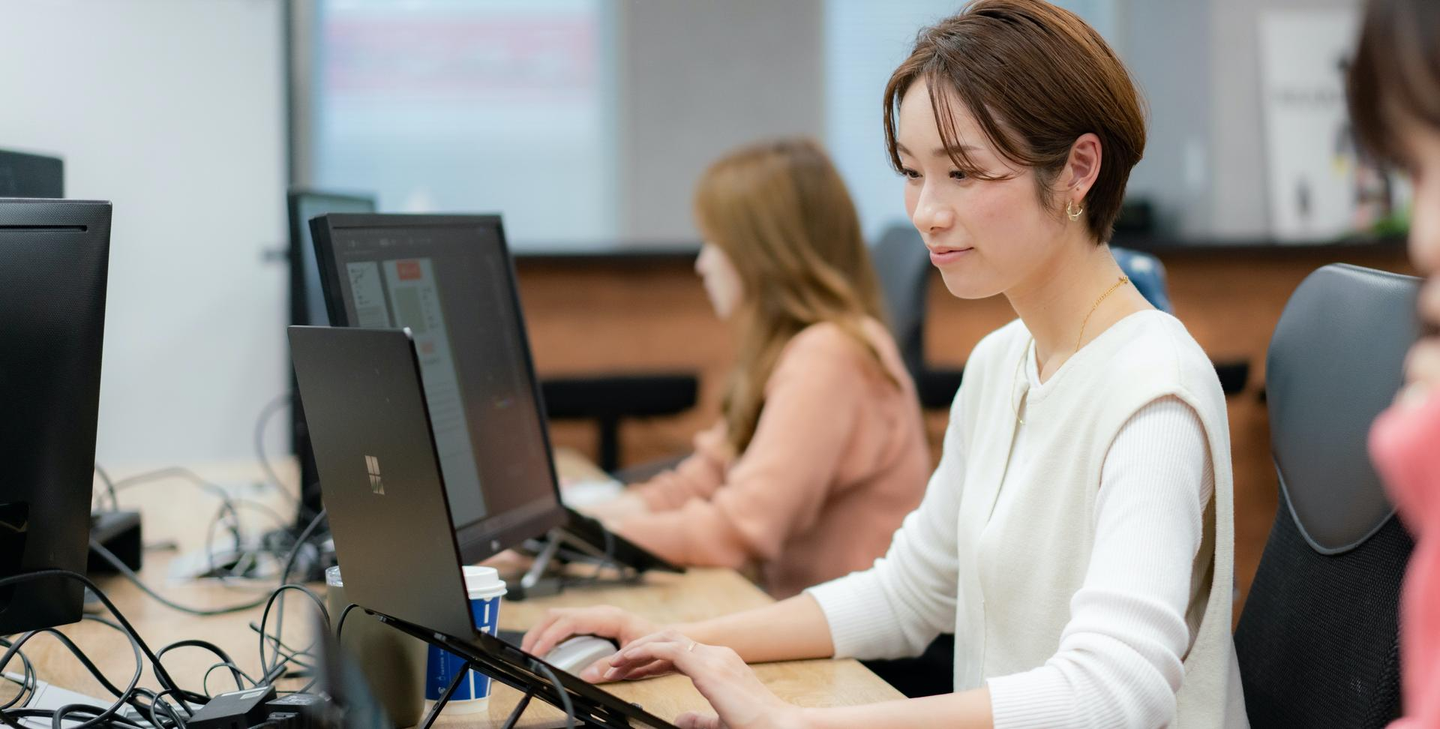 最短でスキルアップを図るため、各専門分野におけるエキスパートを外部講師としてアテンドしています。これまで広告運用、クリエイティブ制作、デザイン、コーディング領域において研修を実施。毎週〜月数回の勉強会に加え、それぞれの担当案件を日常的に講師に相談できる体制を整えています。個人のスキルアップだけでなく、外部で得た知識を自社ナレッジとして蓄積することで成果につなげています。