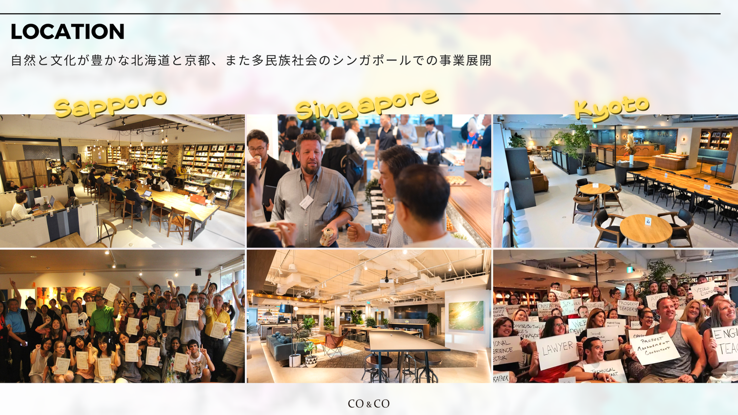 CO&COの事業は少し複雑で理解しづらいと言われることも多いため、2021 年からの国内外への拠点展開にあたり、改めてCO&COという会社をよりわかりやすく言語化していくべきだと考えました。CO&COが何を目指し、どのようなことを大切にしているのか、そしてどのような事業を展開しているのかなどを整理し、複数回に渡ってその実態をひも解いていきたいと思います。