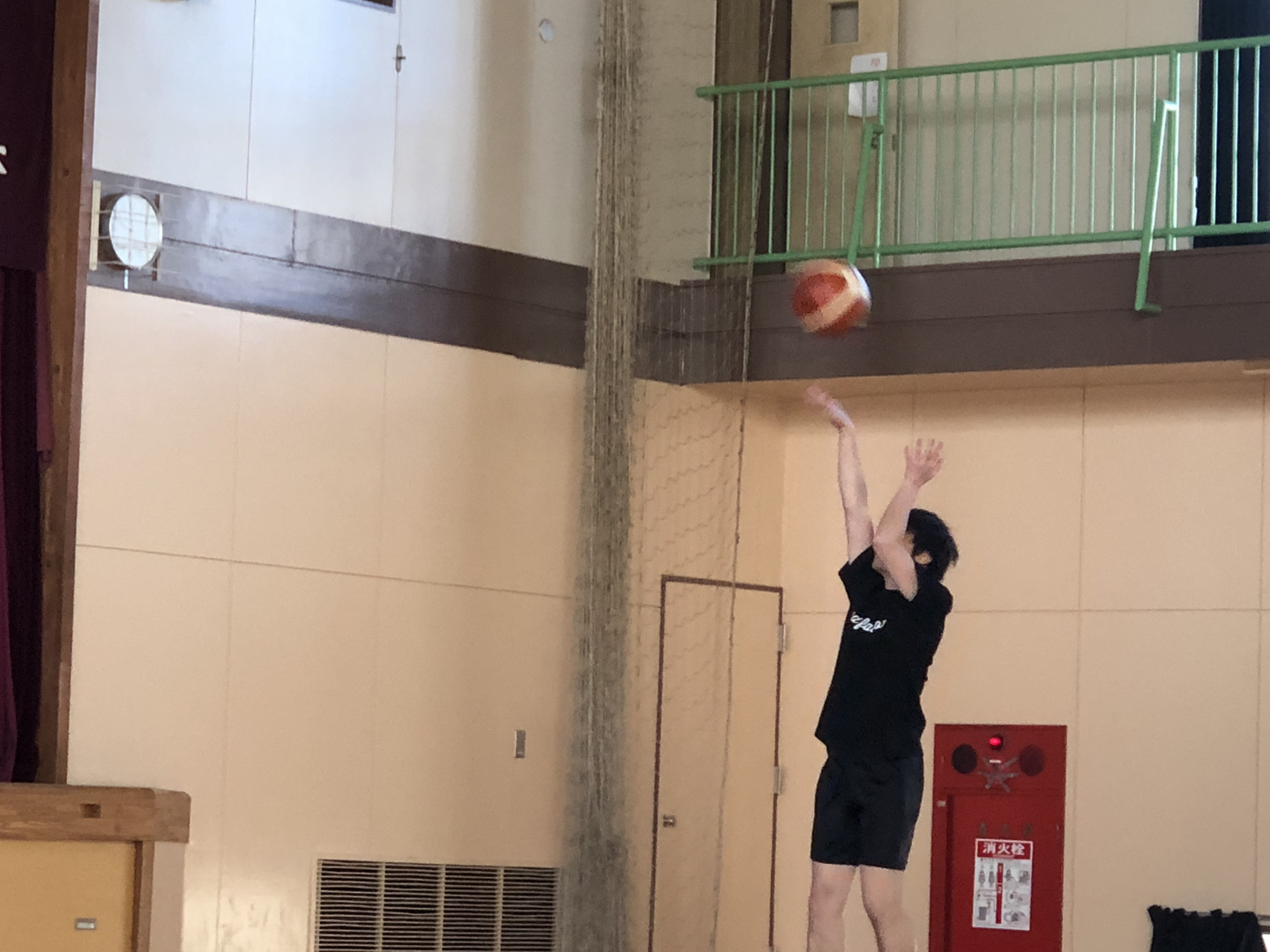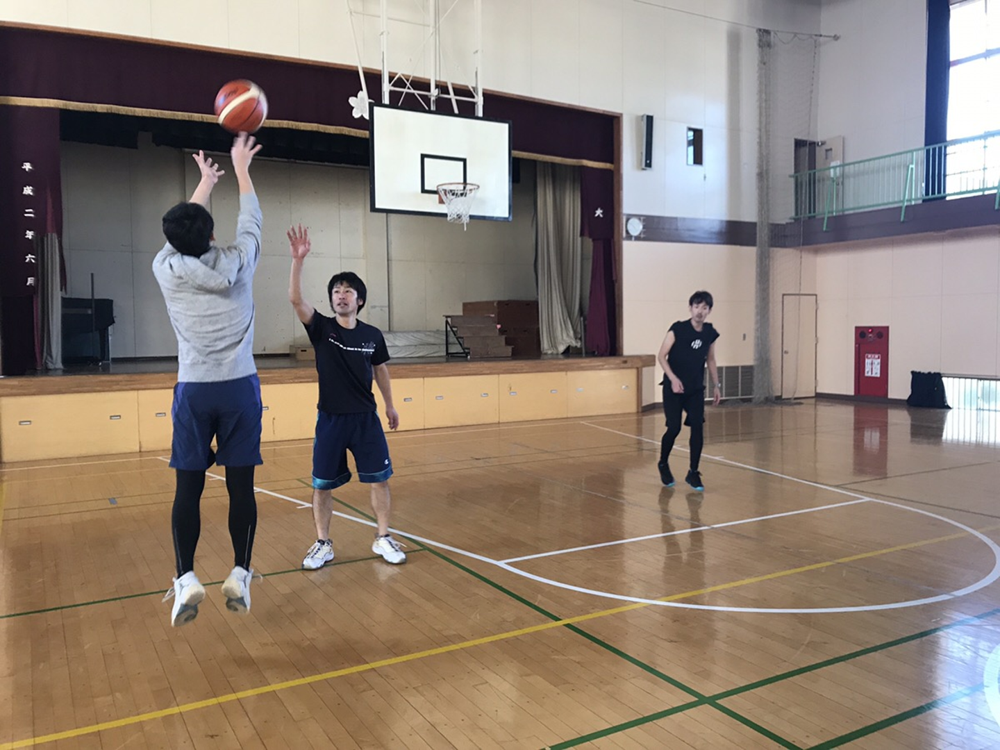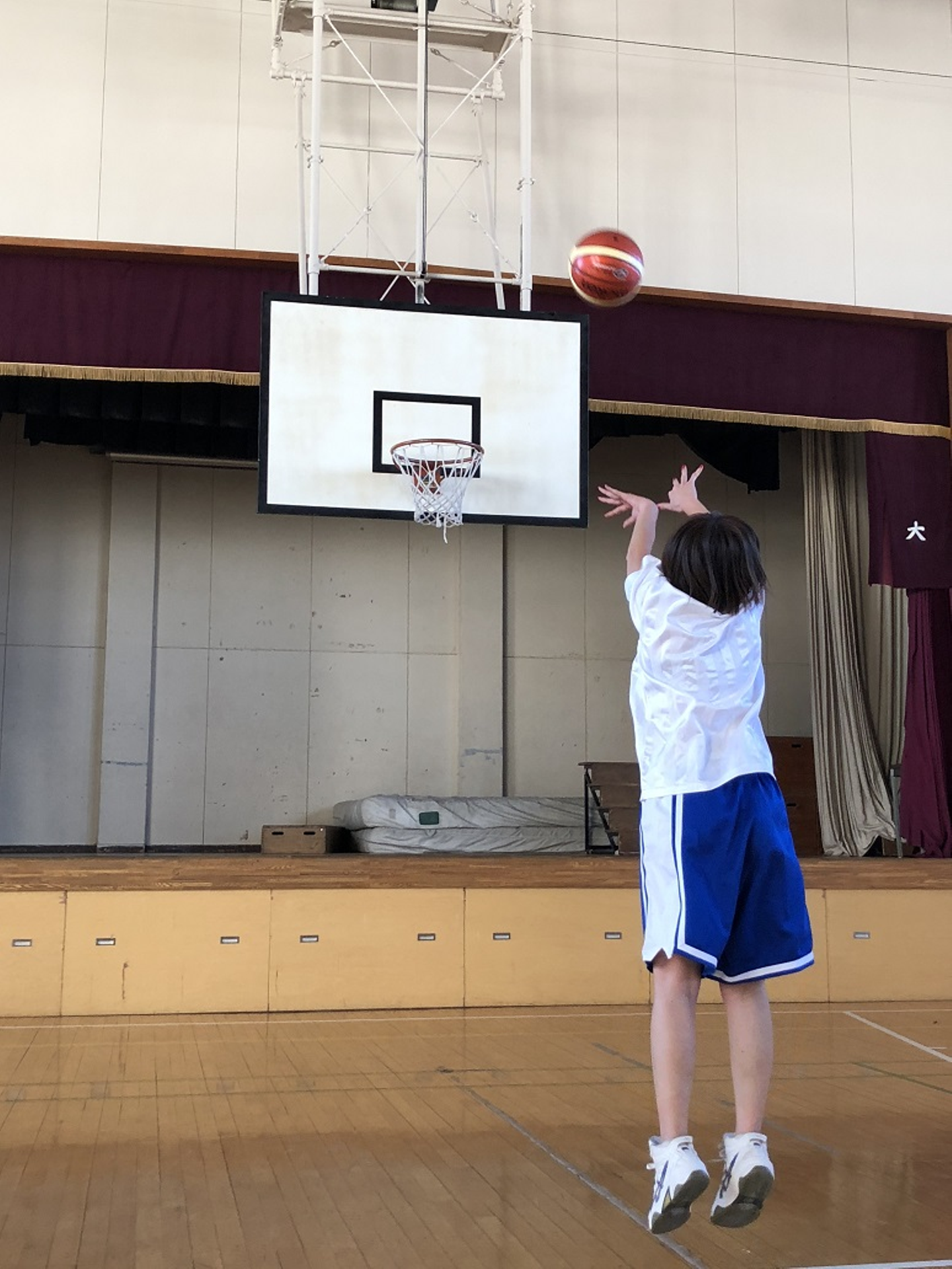 寒いからなのか、ダッシュしすぎたからなのか、前回以上に息が上がり体力が衰えを感じた私。フリースローもジャンプをするのが精いっぱい。(後ろ姿がもう重たそう…)