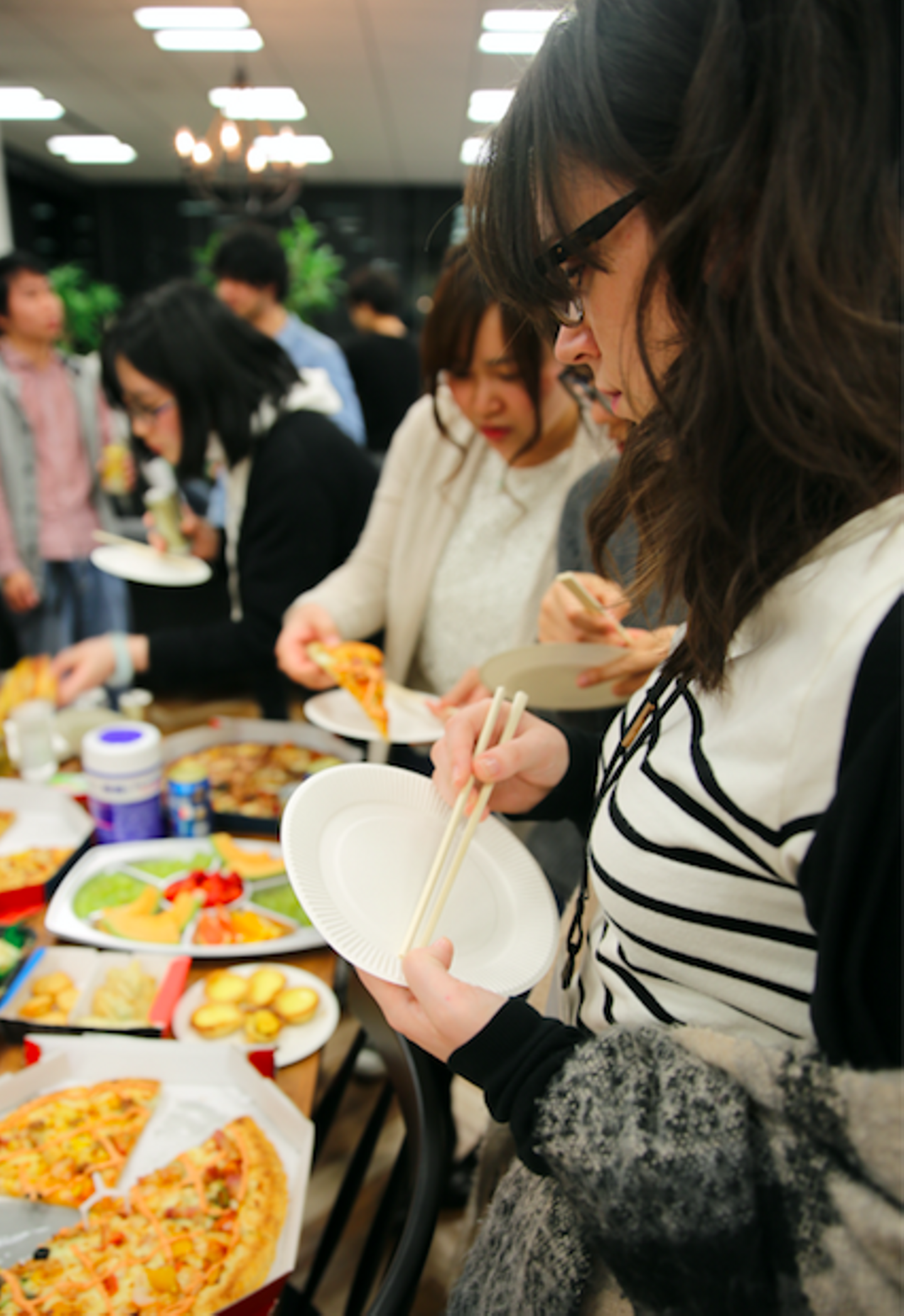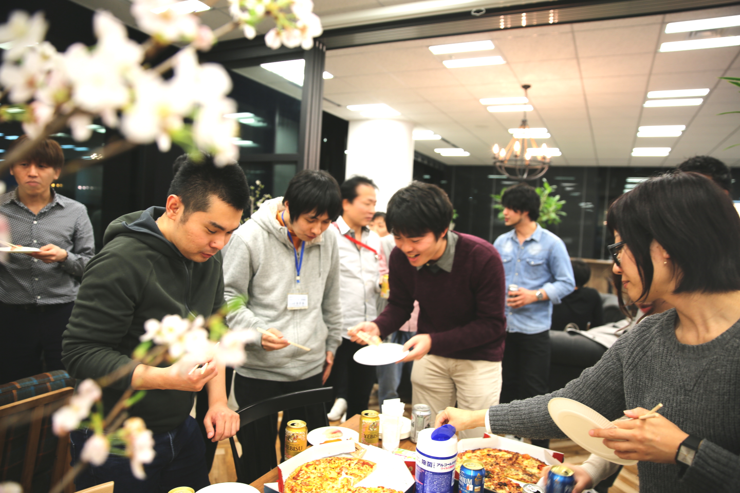 ( ↓ こちらは桜を用意して、オフィスでお花見をした際の様子です)