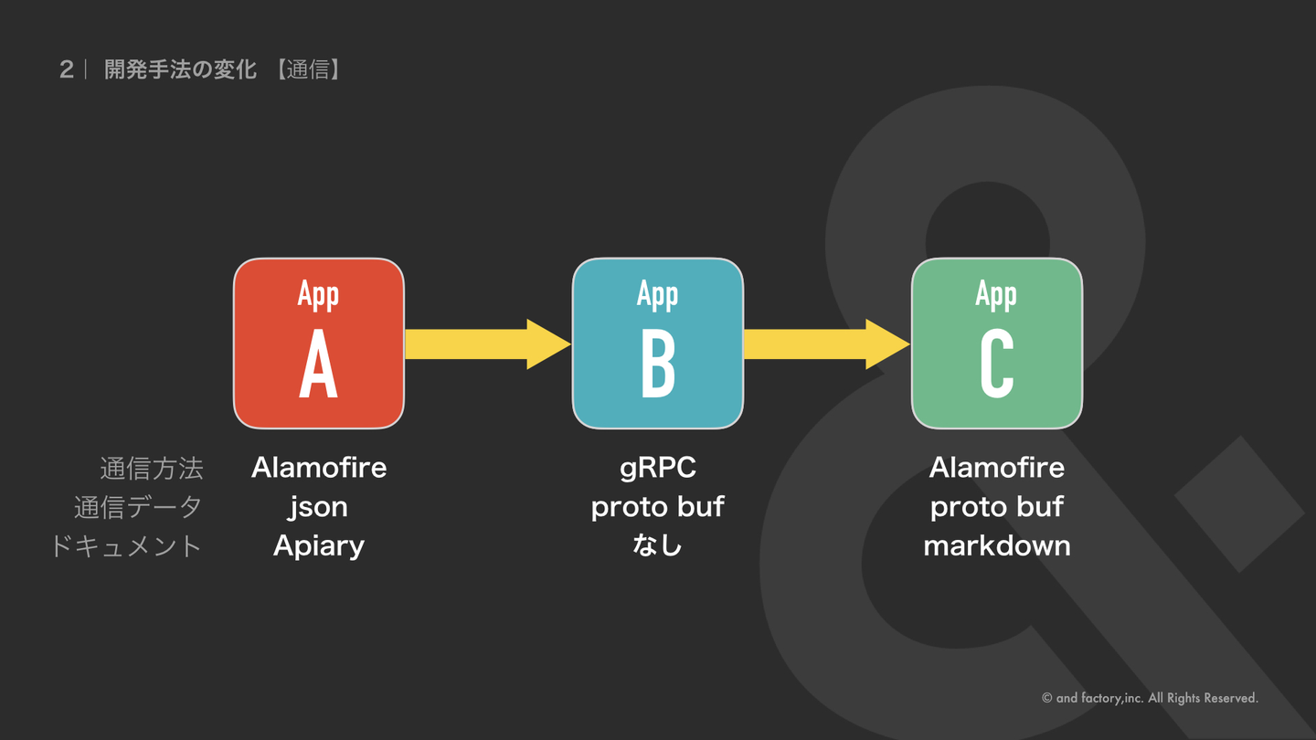 最終的にはそれまでのいいとこ取りをしたような、AlamofireとProtocol Buffer、ドキュメントにMarkDownの組み合わせに落ち着きました。現状改善すべき点は特になく、よい形にできました。