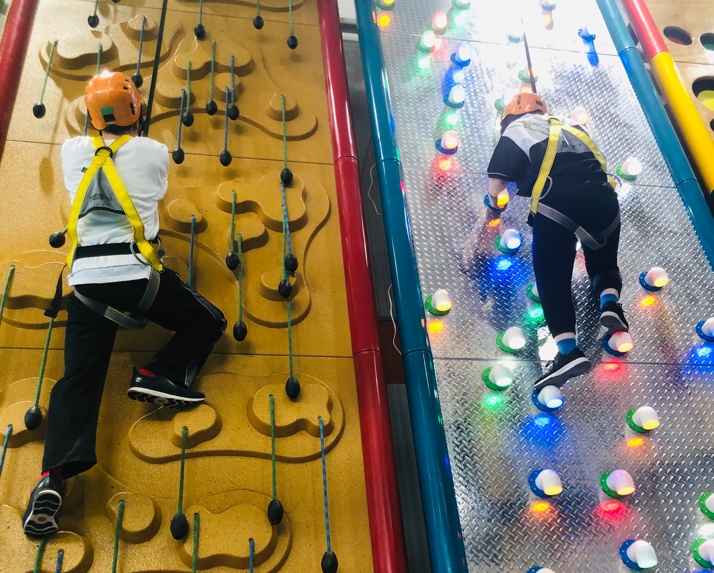 壁登り最後はプロジェクションマッピングとセンサーを組み合わせた、なんだかハイテクな壁