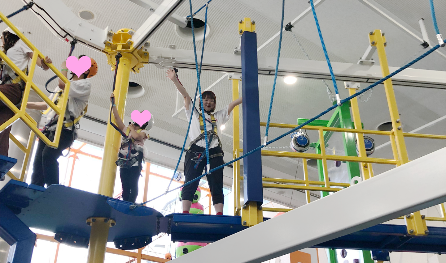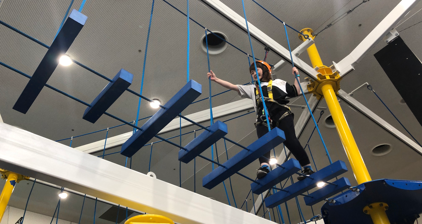 天井一面にロープやらワイヤーが張り巡らせれていて、全長111mを縦横無尽に渡れるや〜つ