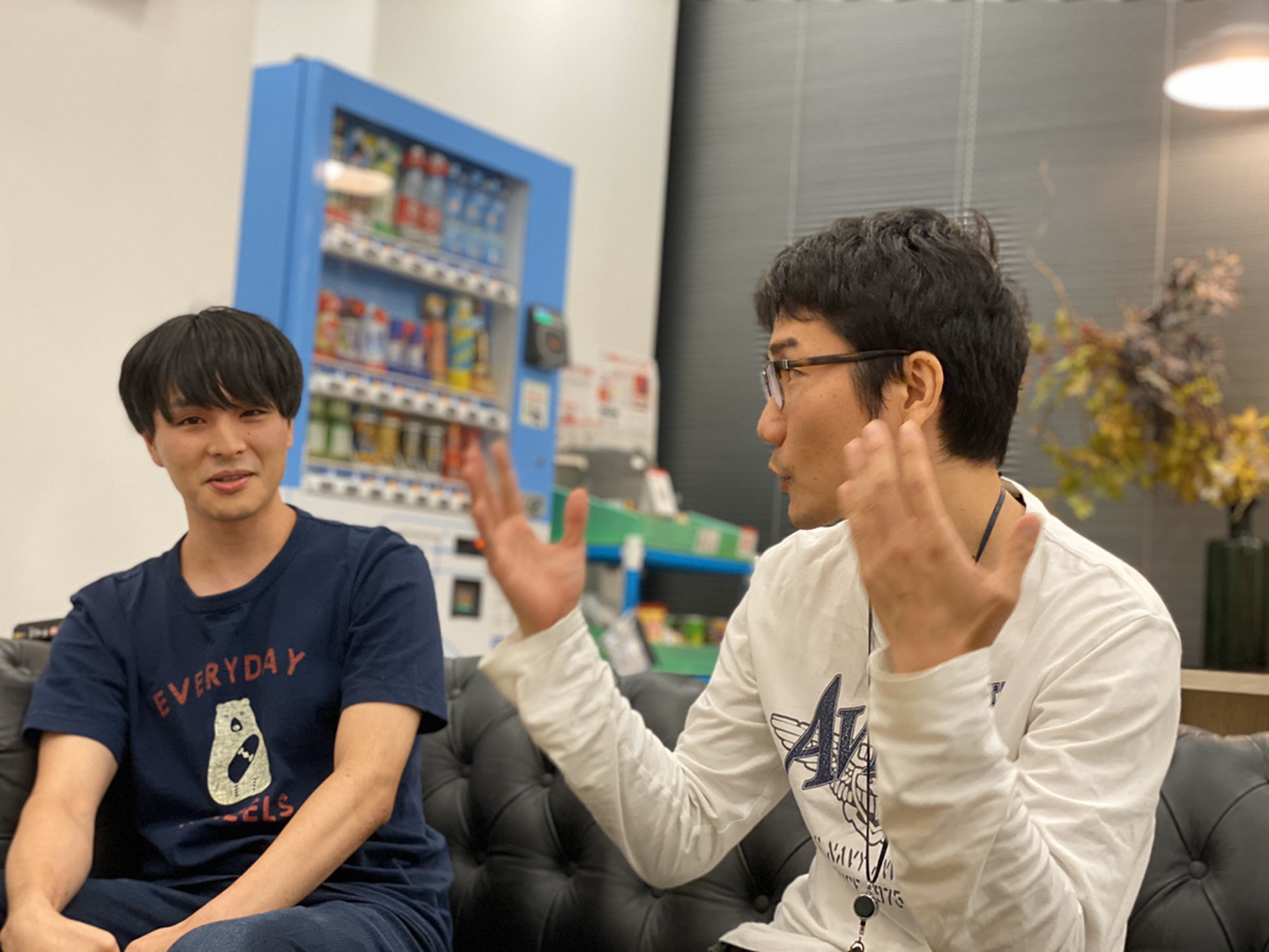 本当は喋っちゃいけないのに、ルールを無視してガンガン話しかける部長と、戸惑う後輩の図。