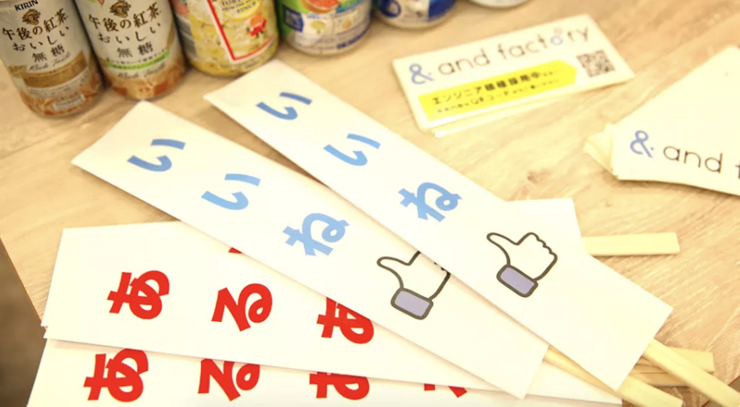 当社オフィスで開催の際には、こちらの『あるある札』を参加者さまにお持ちいただき、登壇者の発表中に「共感=あるある、タメになる=いいね」、のリアクションをいただいていました。