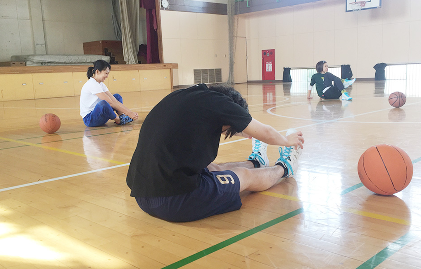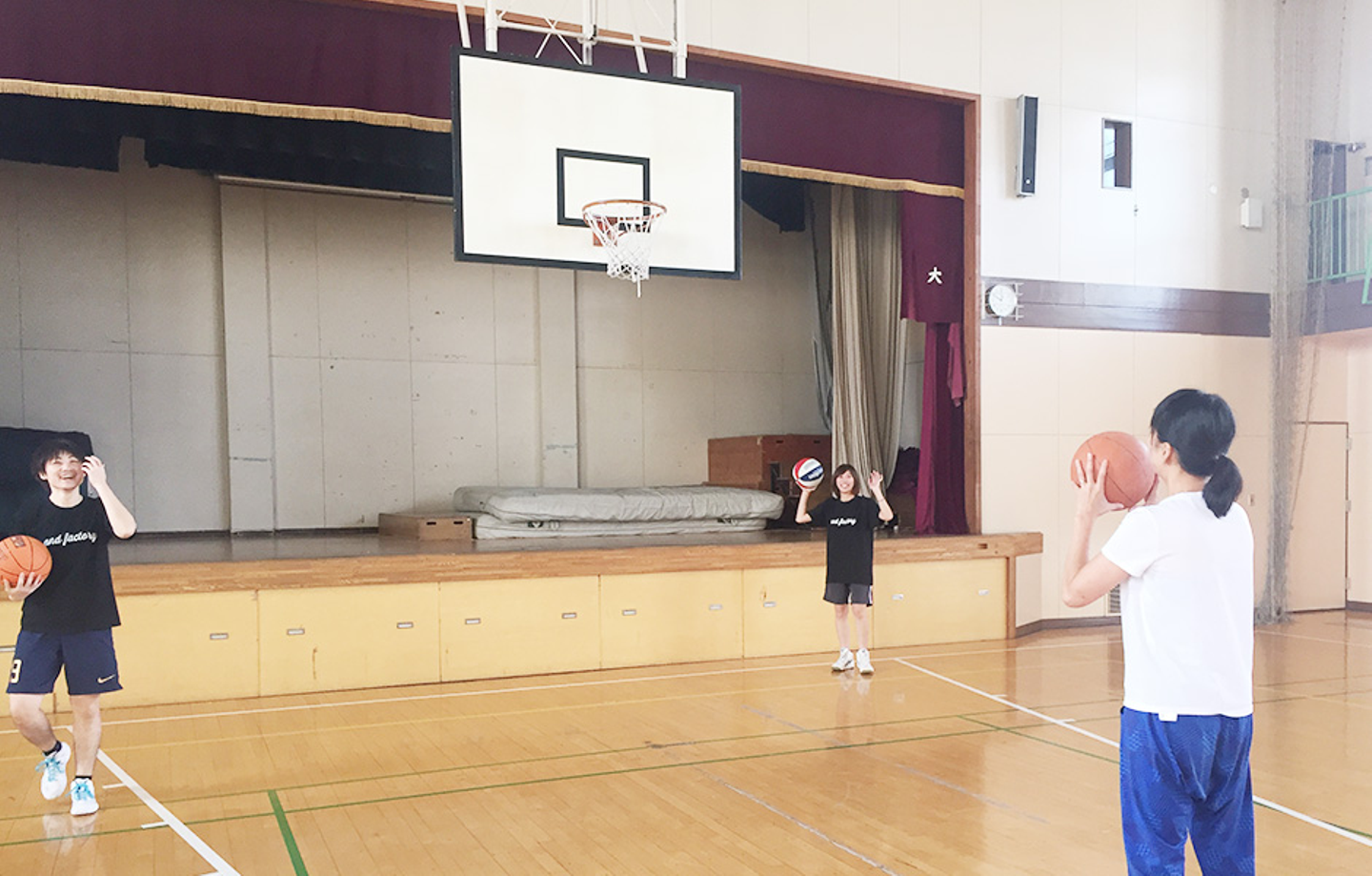 就業時間よりも早い時間に、バスケのために集合です笑