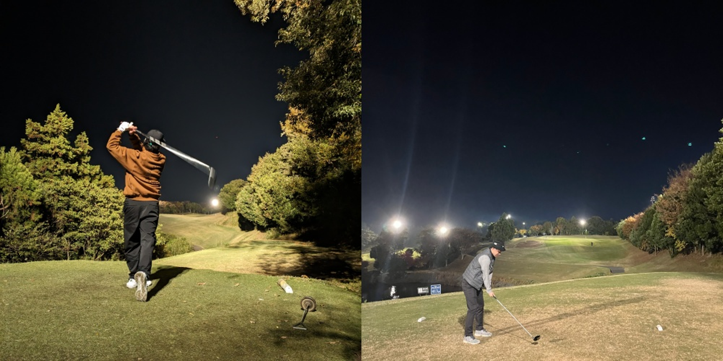 ナイターと言っても、ゴルフコースは煌々と証明に照らさており視界は良好です!