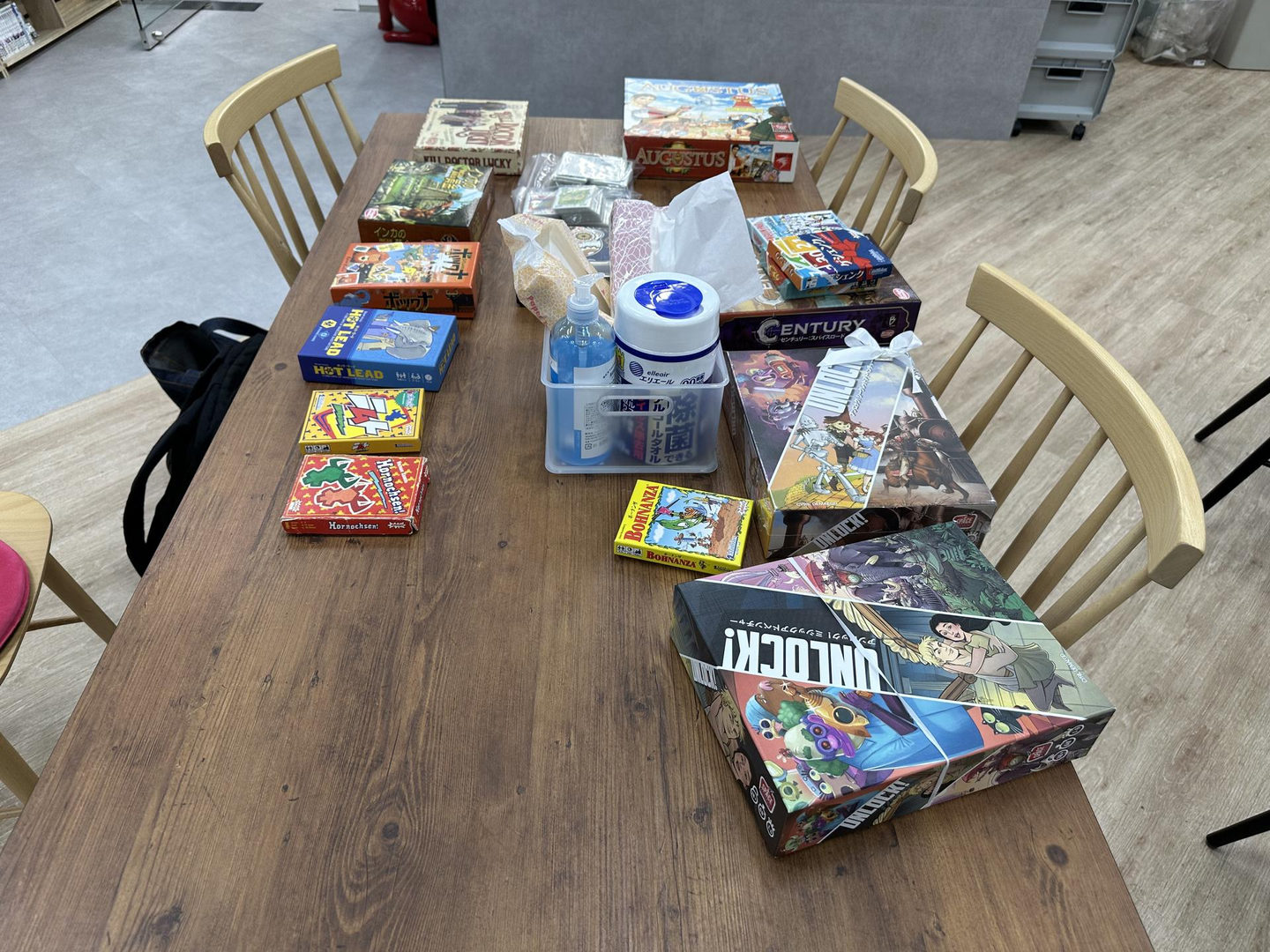 今回持ち寄ったゲームです。人は少なくともできるゲームはたくさんあります。この中から何にしようかと選ぶのも毎回の楽しみの一つです。