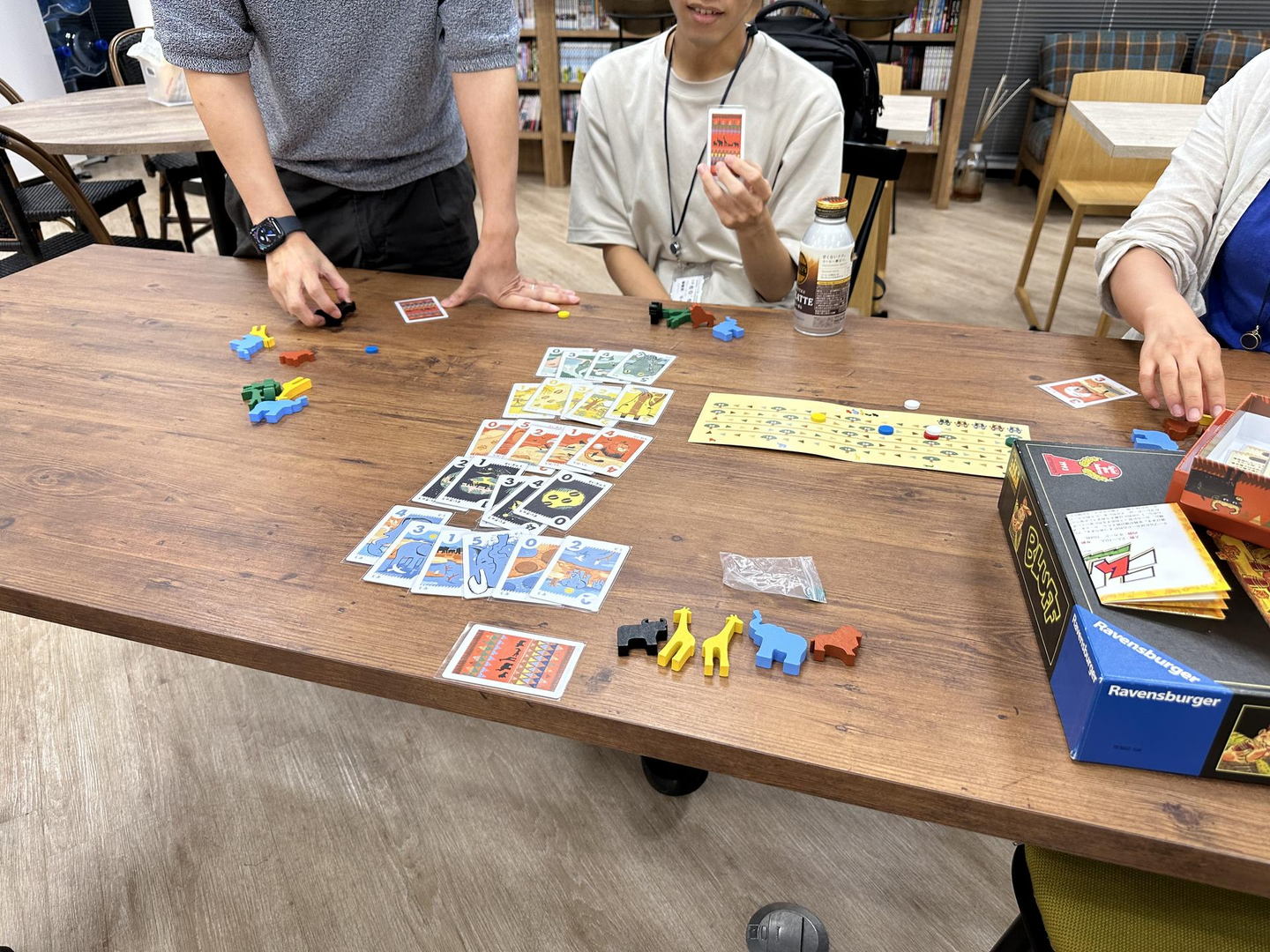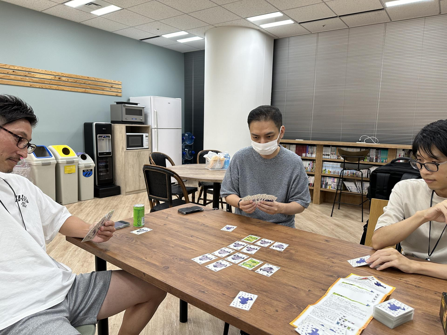 今まで半分オフラインでの活動でしたが、会社としてもメンバーの出社頻度が上がってきたこともあり今月から基本対面で、希望があればオンラインでという形で行うことになりました。今回はお盆の時期と被ったこともあり少数での開催となりましたが、その分色々なゲームをして密度の濃い時間を過ごしました。