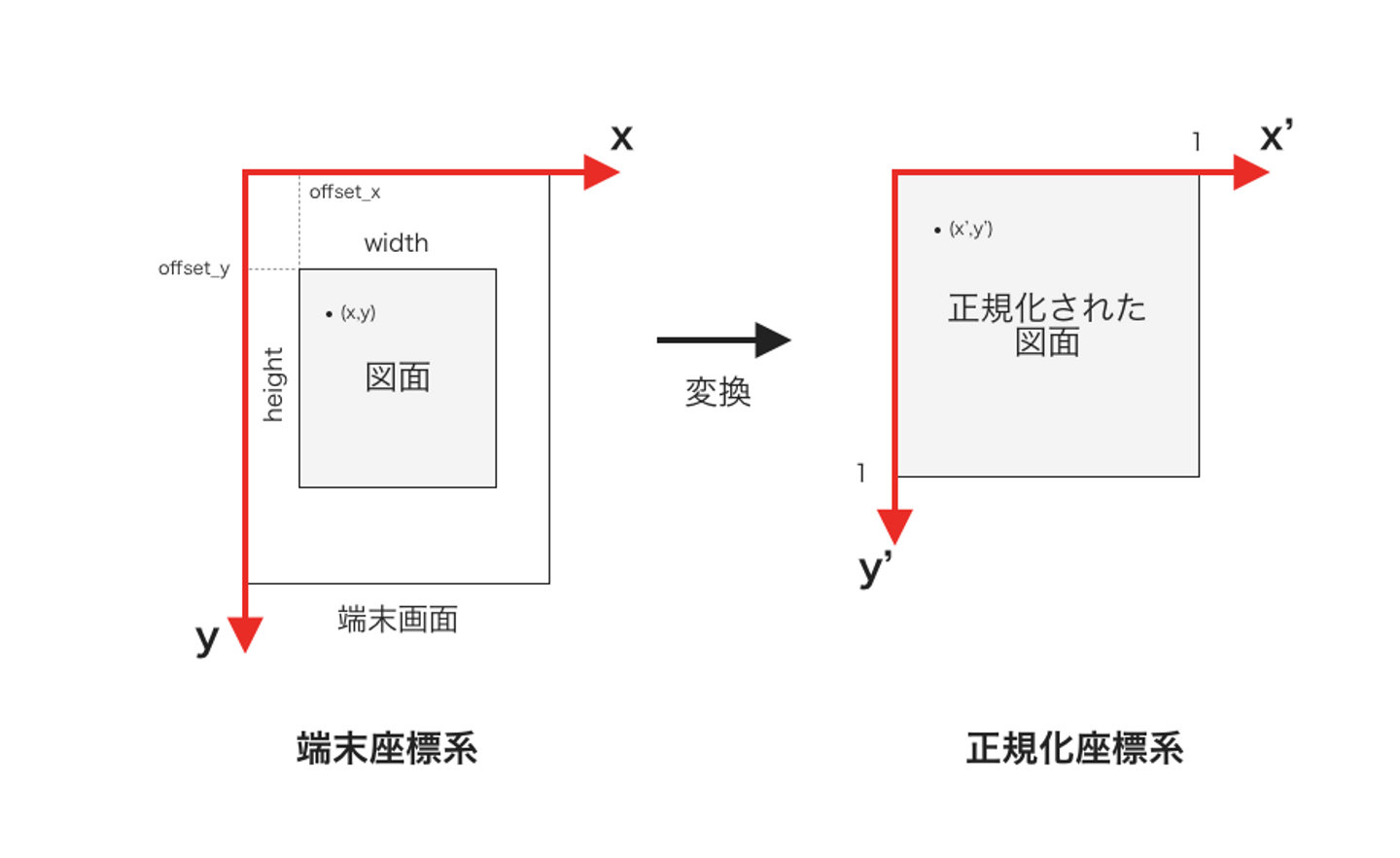 x' = ( x - offset_x ) / width