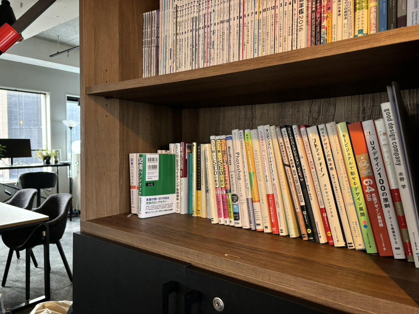 書籍購入制度という福利厚生があり、その制度を利用して購入された本なども棚に並んでいます!