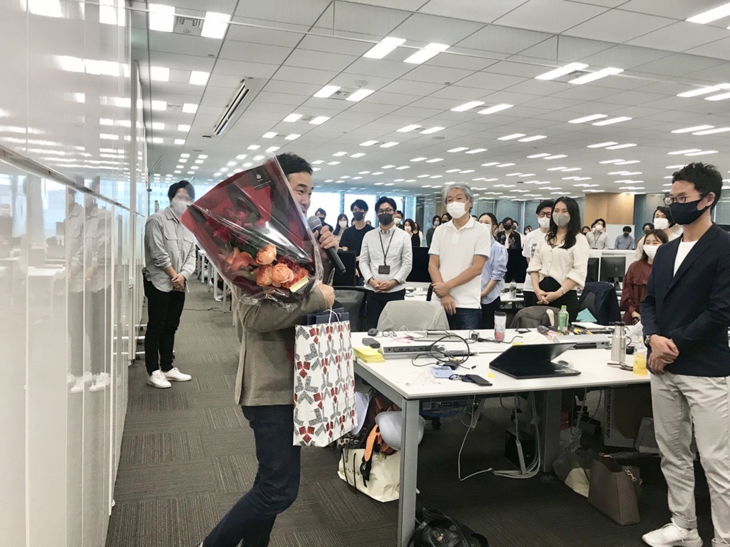 コロナ禍で在宅勤務実施中ですが、出社者の多い全社会議のタイミングでささやかながらお誕生日のお祝いをさせていただきました!