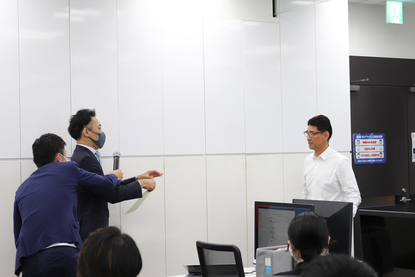 ※感染対策のため出社人数を制限している関係で、在宅の社員にはオンラインで中継しました!
