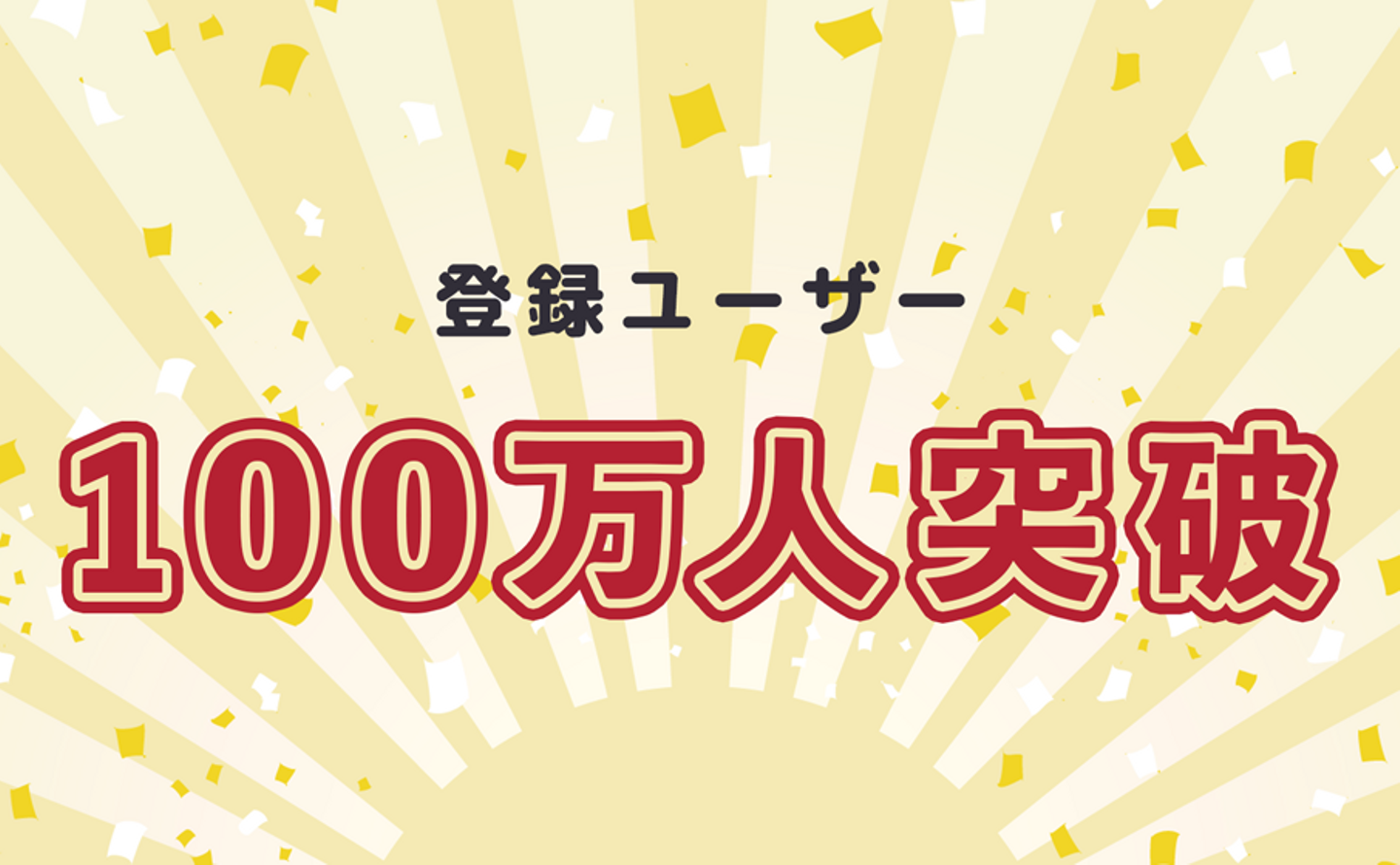 サービスリリースからおよそ4年半というタイミングでユーザー数100万人を突破することができました!!!また、それを記念してユーザーの皆様にクーポンの配布を行いました。