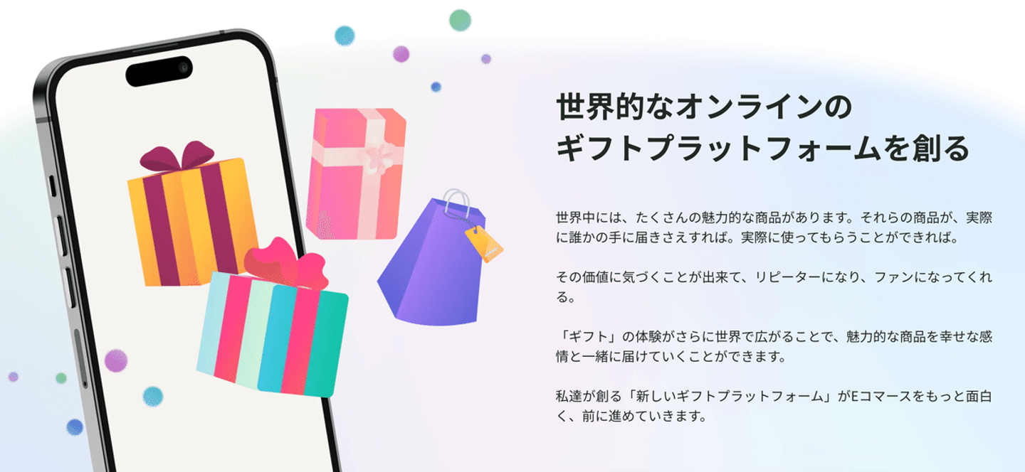 AnyReachはギフト領域で事業を展開しています。ギフトは、受け取る側はもちろん、贈る側もすごくワクワクして幸せな気持ちになれます。そして、物のやり取りだけで終わらず、ギフトをきっかけにコミュニケーションが始まり、人と人の繋がりが生まれていきます。そしてブランドにとっても、ギフトを通じて商品の魅力を伝えることができるので、まさに三方良しです。