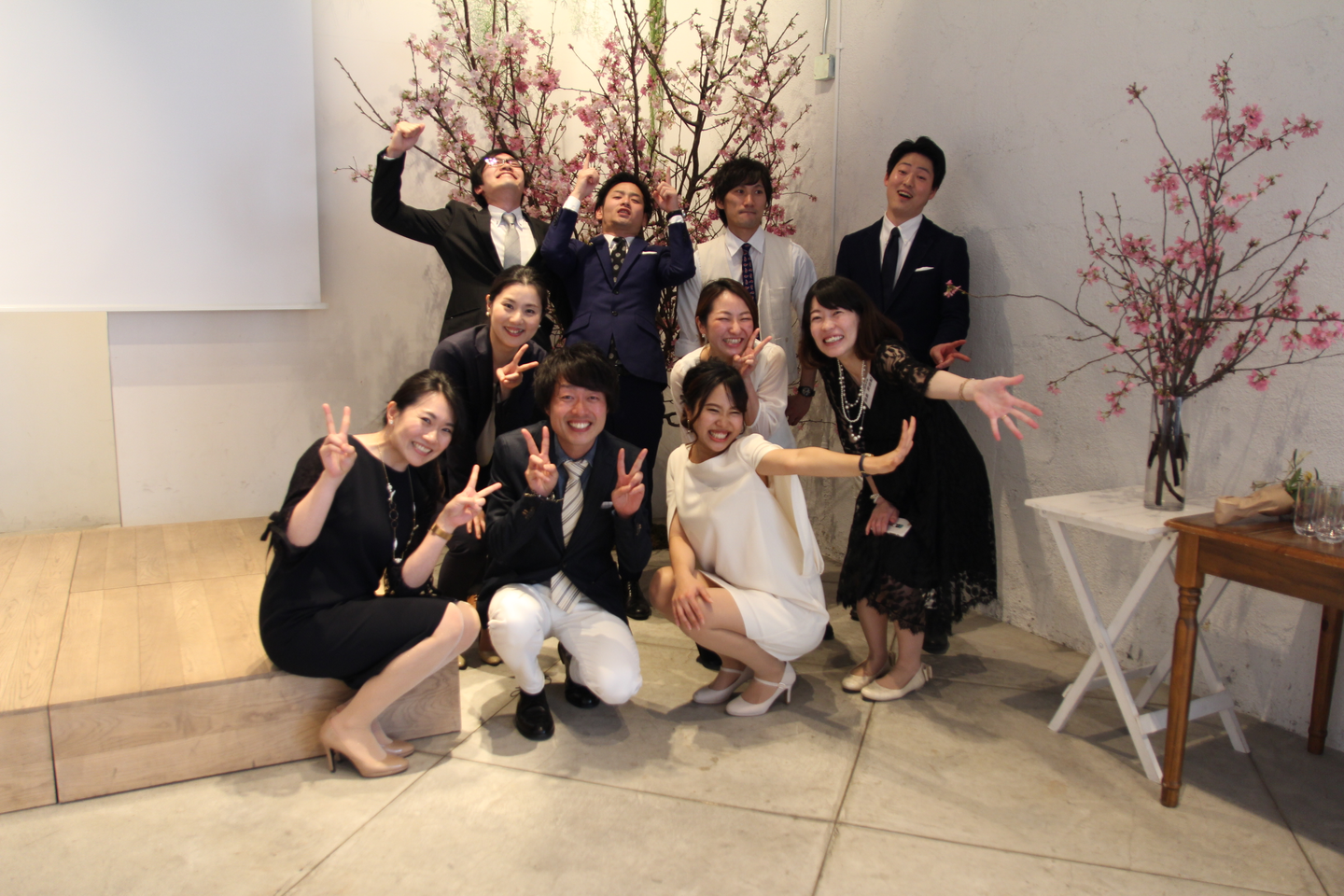 「結婚式場で結婚式やるからにはドレスコードも結婚式っぽくしよう!」と入社式のドレスコードはスーツではなく、各々結婚式風にとびきりおしゃれして参加しています。