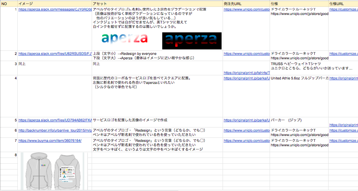 イメージの画像があれば合わせて添付して、デザイナーの方がデザインに起こしやすいようにしました。