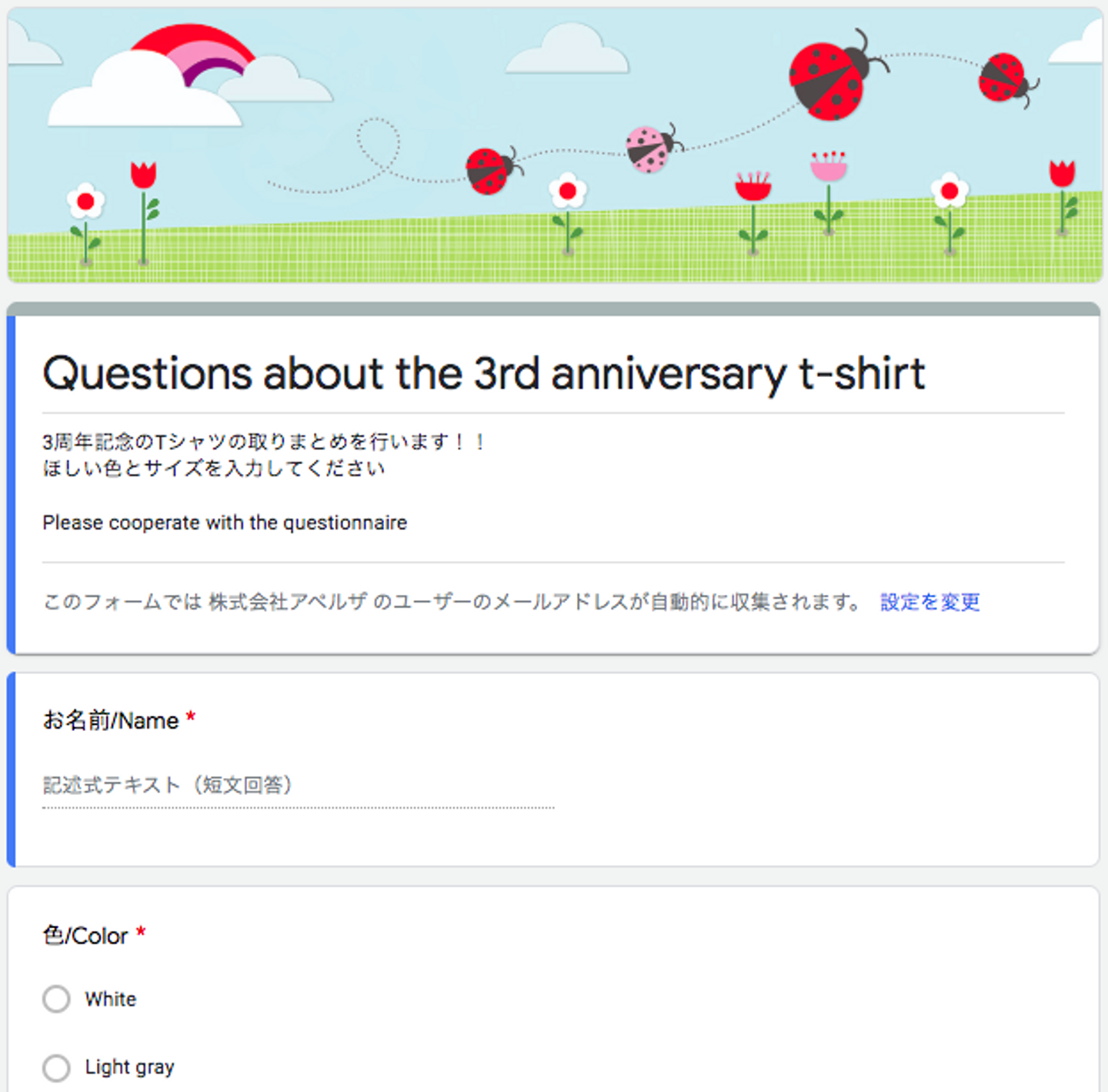 取りまとめはGoogleフォームで行いましたのであっという間に完了できました♪