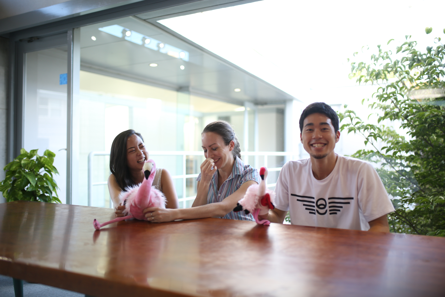 フラミンゴは結構グローバルな環境です。私も外国人だし、もうひとりも外国人で、バックグラウンドとして外国に居た経験の人も多いです。