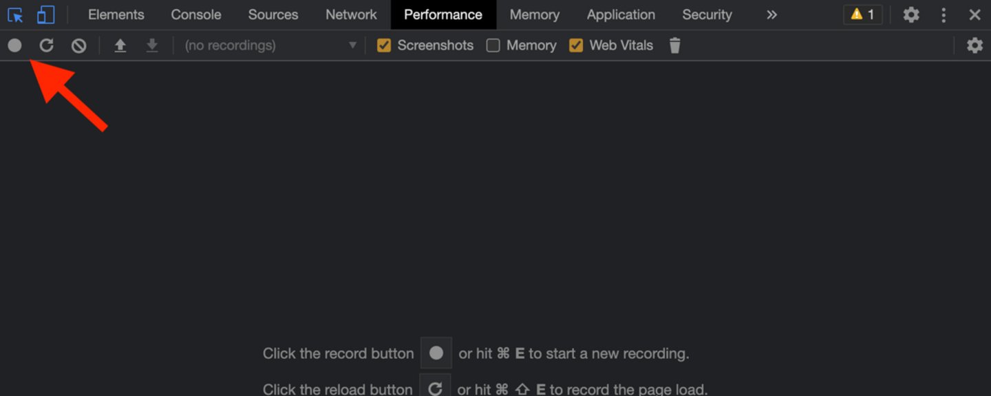 CLS悪化の原因を調べるためには、Chromeのdeveloper toolのPerformanceタブを使います。 左上のrecordingボタンを押すと計測が始まります。